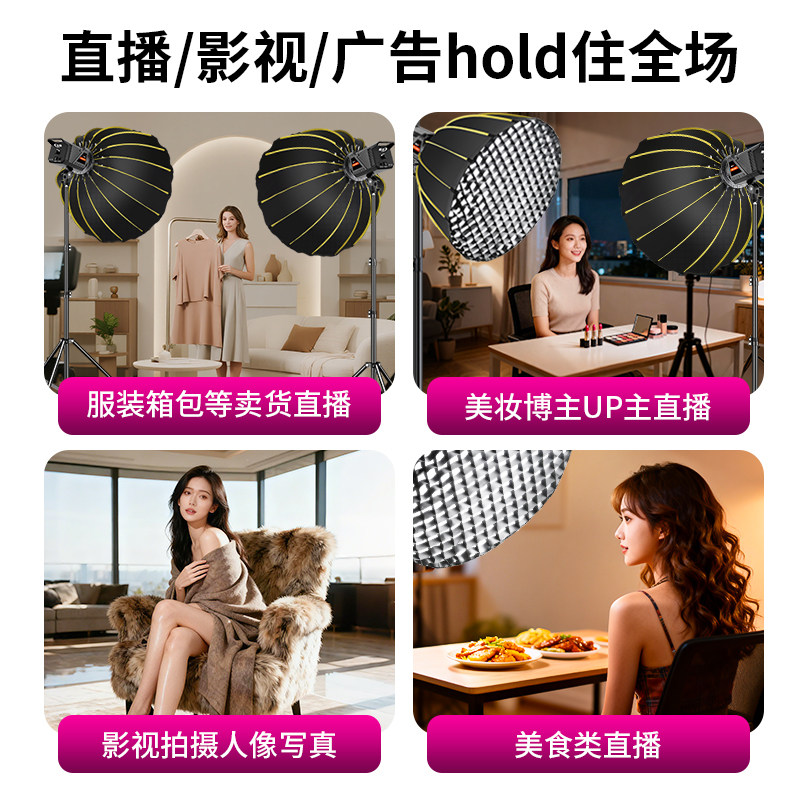 深抛格栅直播补光灯主播专用柔光箱室内影棚拍照专业美颜摄影灯直播间球形深口抛物线视频拍摄电影太阳灯蜂巢