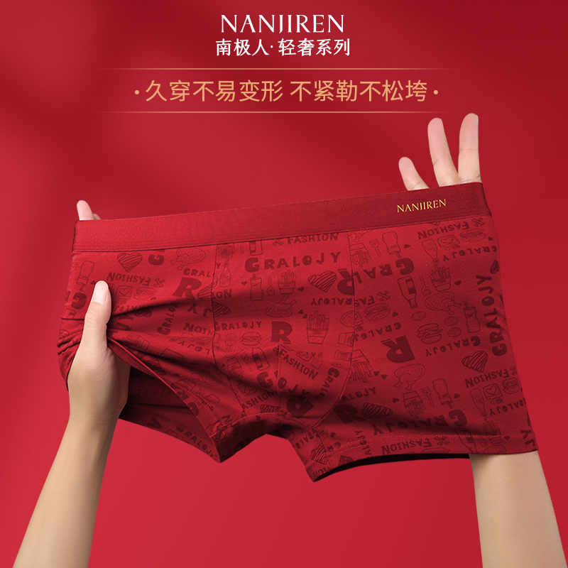 南极人男士内裤纯棉2025新款内裤男式舒适透气大红色本命年平角裤