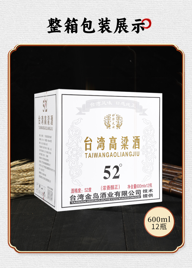 中国台湾高粱酒52/58度纯粮白酒浓香型600ml*12瓶装特价正品保真