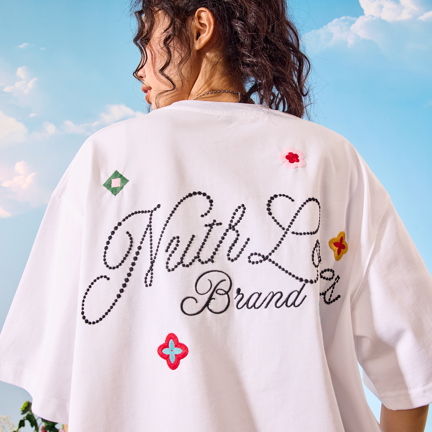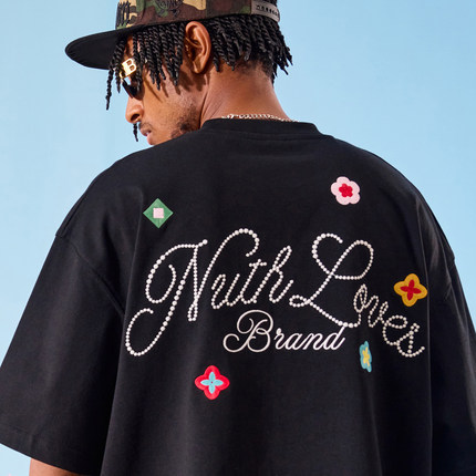 Nuthink国潮字母花朵刺绣短袖T恤美式宽松半袖高端男女2025夏新款