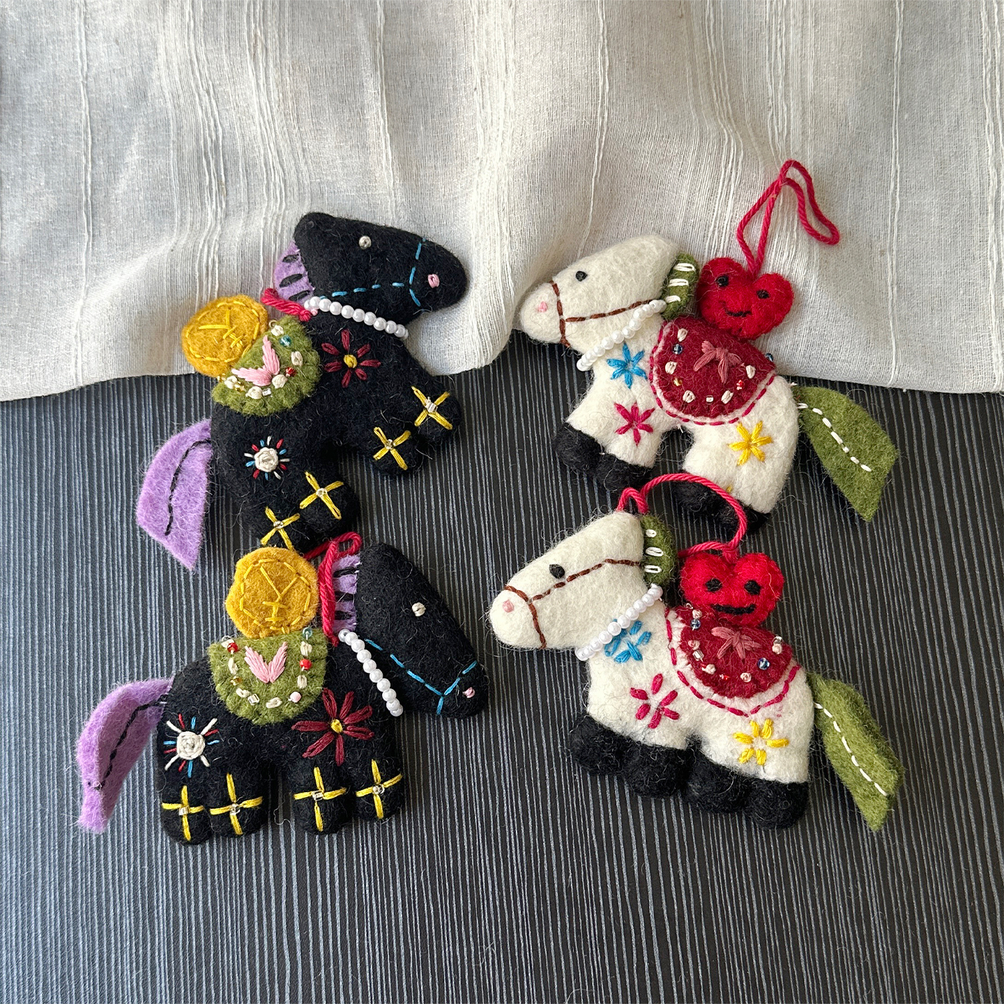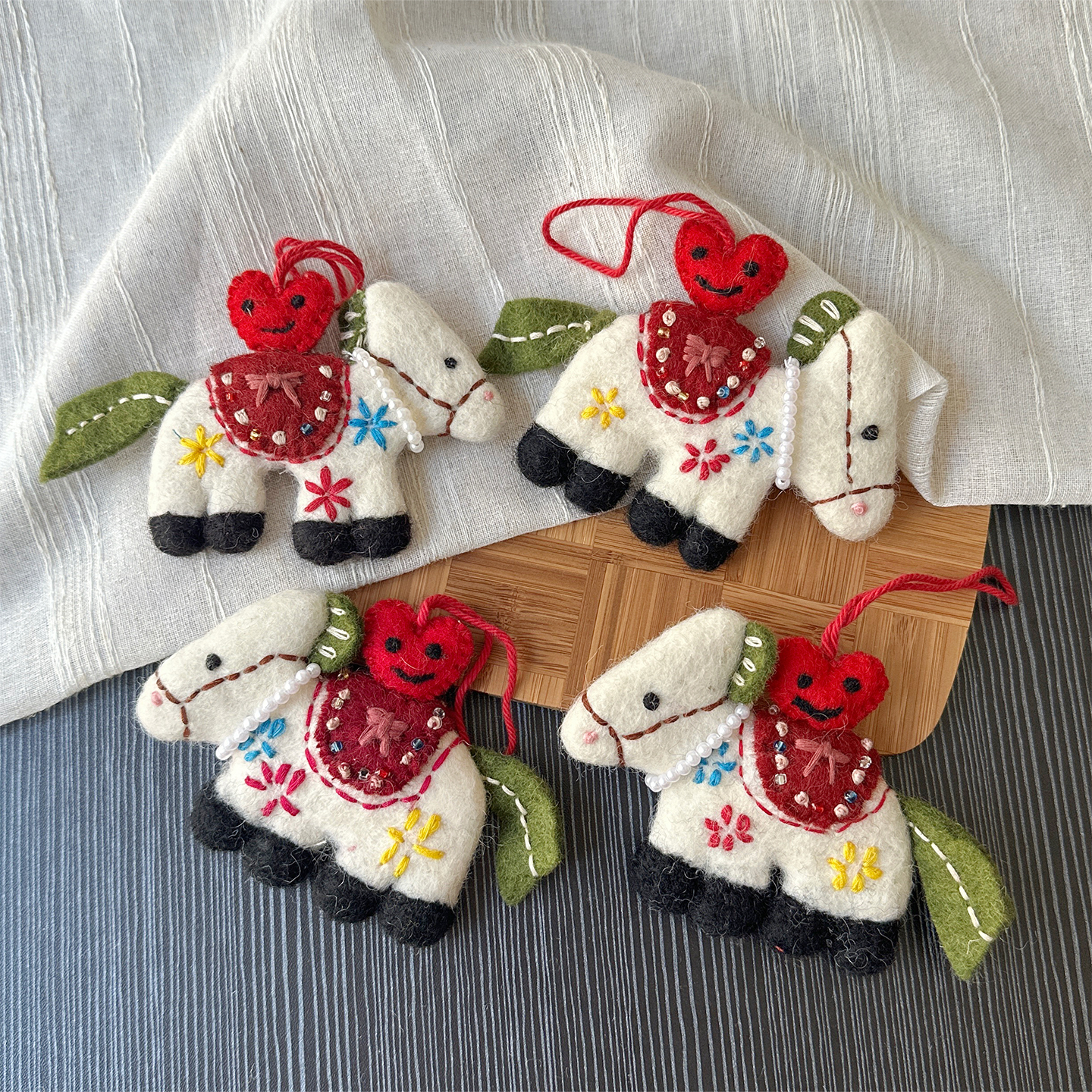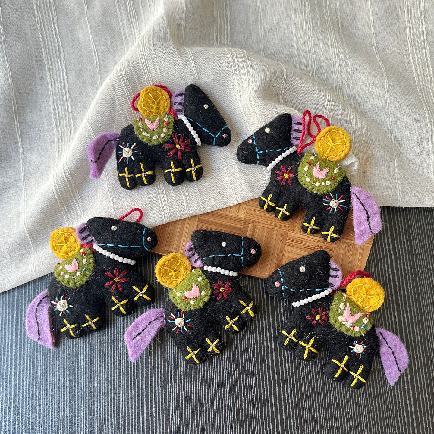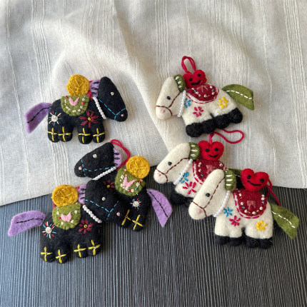 一格杂货 尼泊尔手工羊毛毡包包挂件可爱小马背包学生书包挂饰