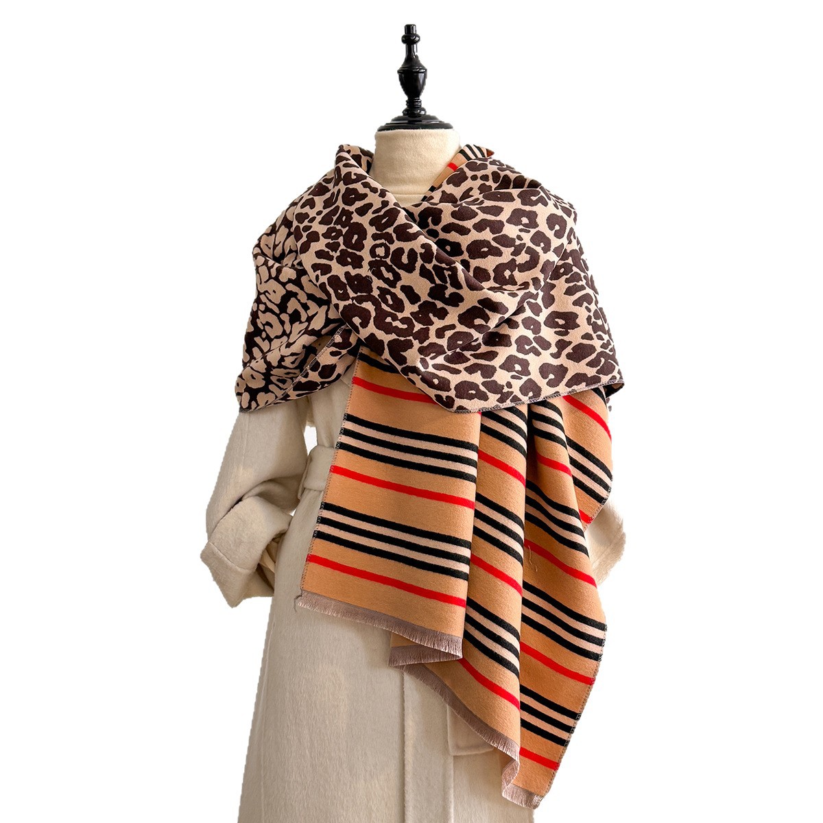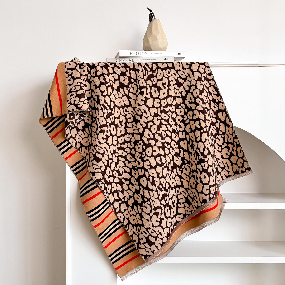 亚马逊热品欧美秋冬豹纹仿羊绒保暖加厚女士围巾披肩两用