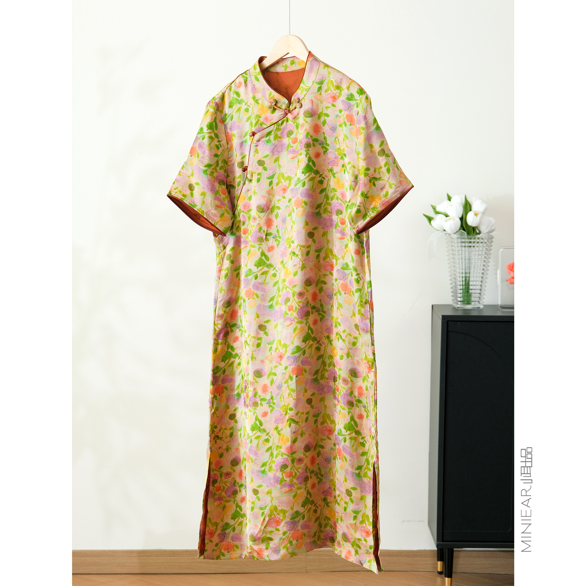 小耳出品【重磅木薯丝/满身花织锦缎】丝滑缎面新中式盘扣旗袍裙