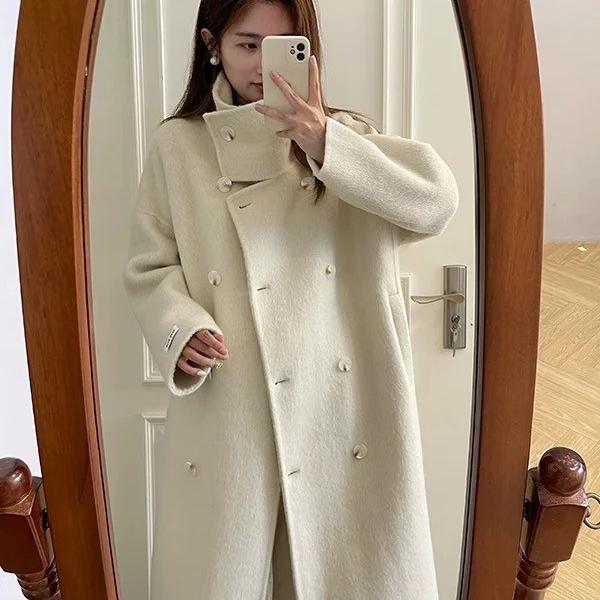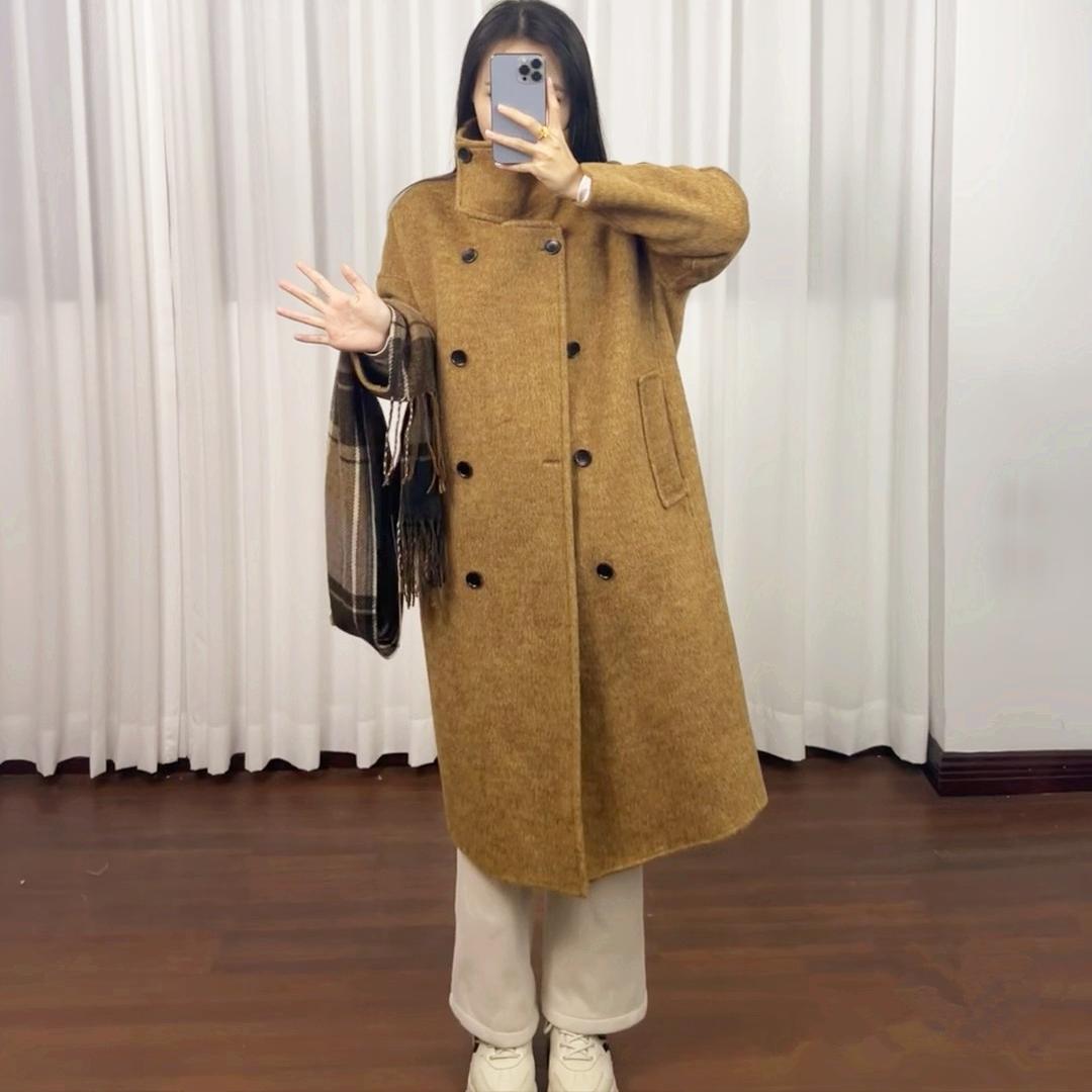 2025秋冬新款长毛立领双面羊绒大衣女宽松高级感中长款羊毛呢外套