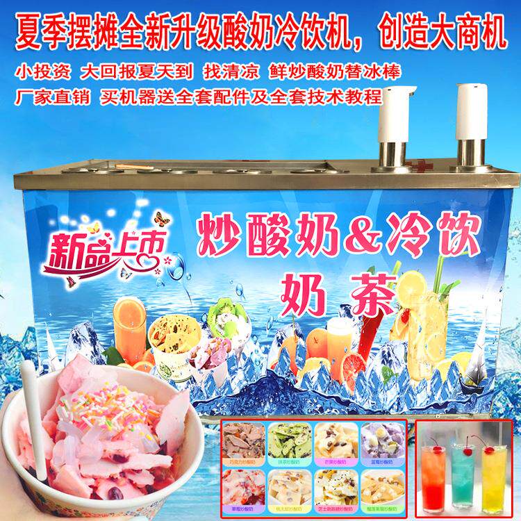全自动炒酸奶机商用炒冰淇淋冰粥摆摊机器冷饮奶茶炒冰一体机