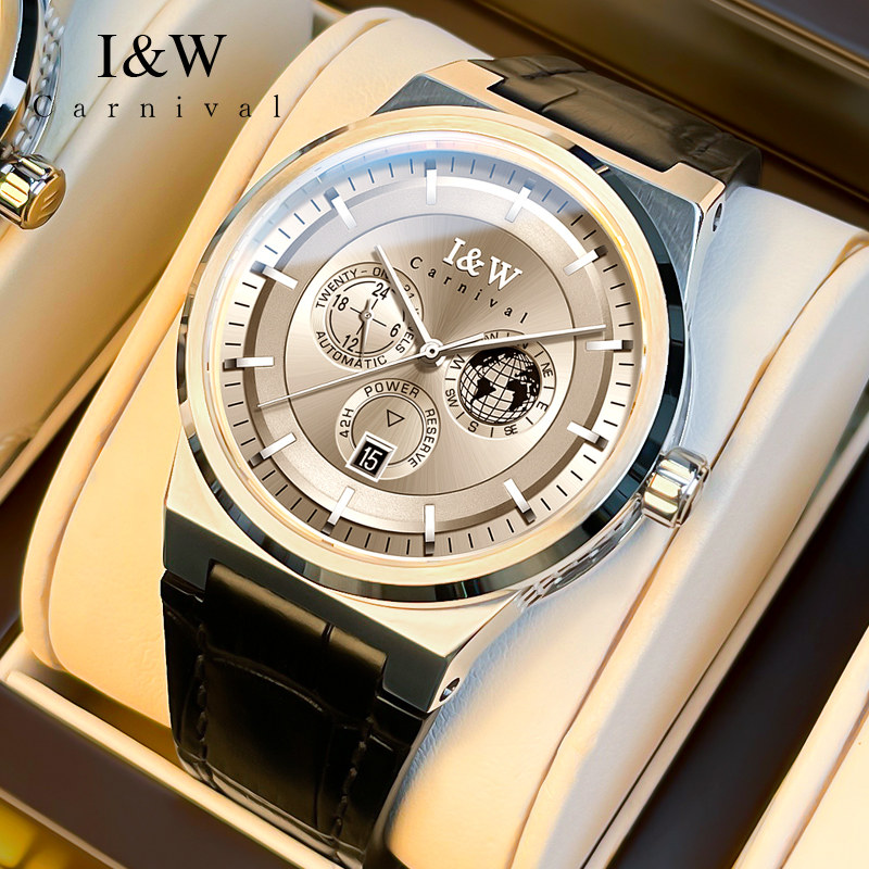 IW多功能时尚真皮手表男机械表