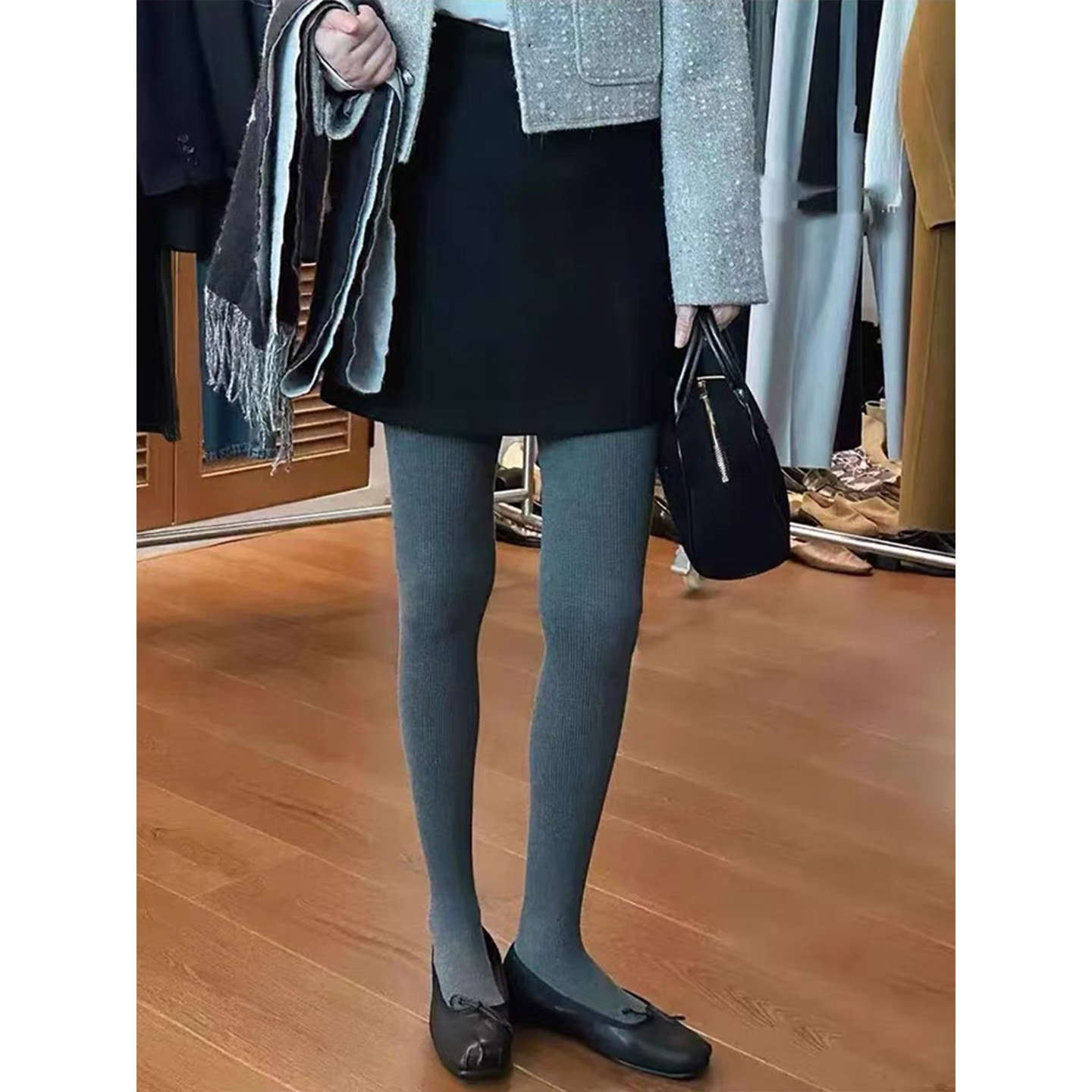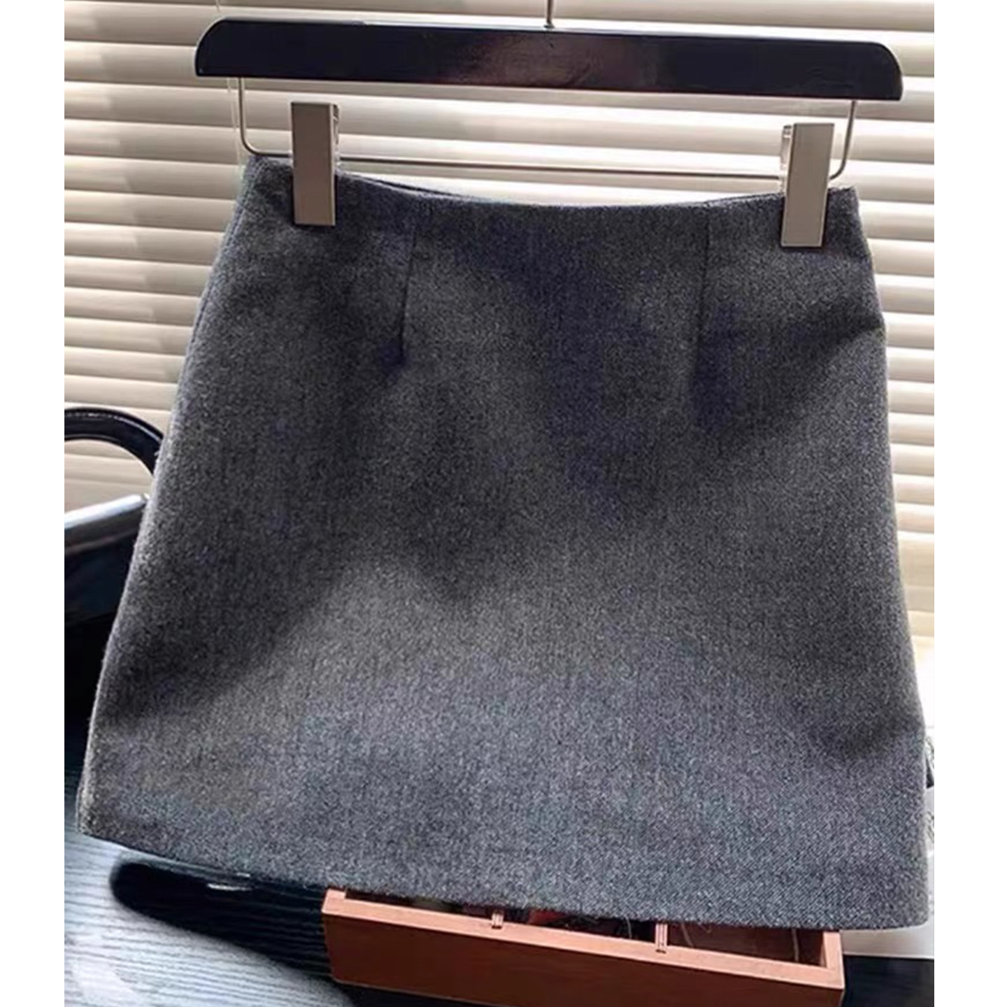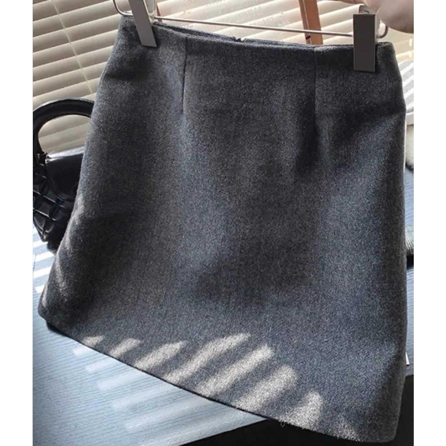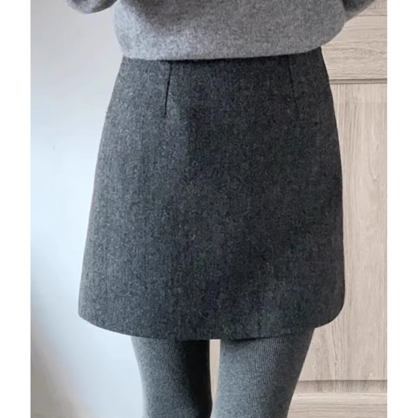 灰色毛呢半身裙高腰显瘦A字短裙