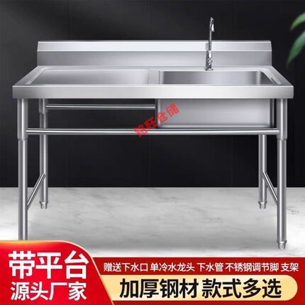 商用304不锈钢水池洗碗池洗菜盆带支架带平台酒T店厨房家用洗刷盆