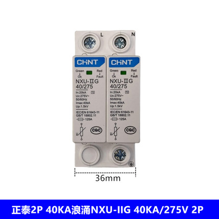 正泰2P 40KA浪涌开关NXU-IIG 40KA/275V 2P浪涌保护器 避雷器