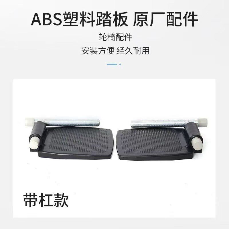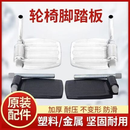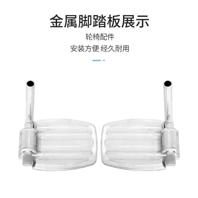 轮椅脚踏板配件通用带杆子铝合金脚蹬加厚塑料折叠金属原装一对