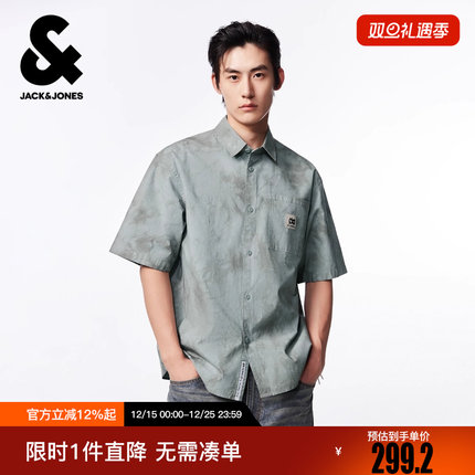 杰克琼斯男装冬新款衬衫时尚百搭字母刺绣翻领宽松休闲短袖上衣