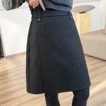冬季毛呢半身裙胖mm松紧腰遮胯a字裙不规则加长短裙灰色毛呢中裙