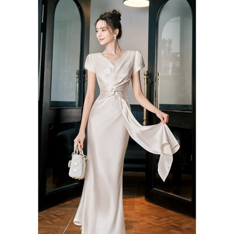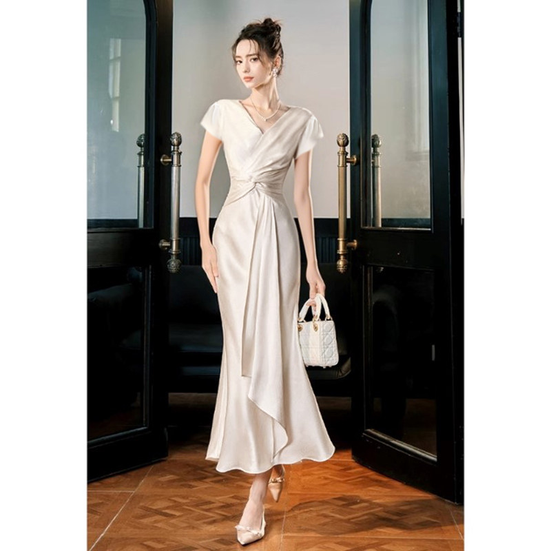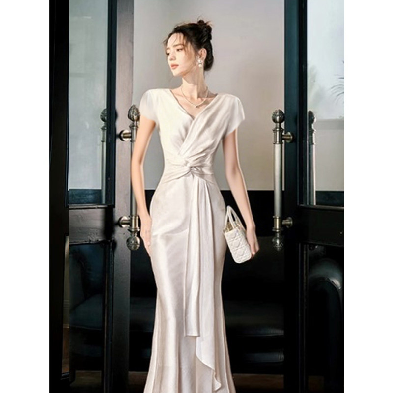 2025早秋新款法式高级连衣裙长袖生日气质鱼尾礼服D3239
