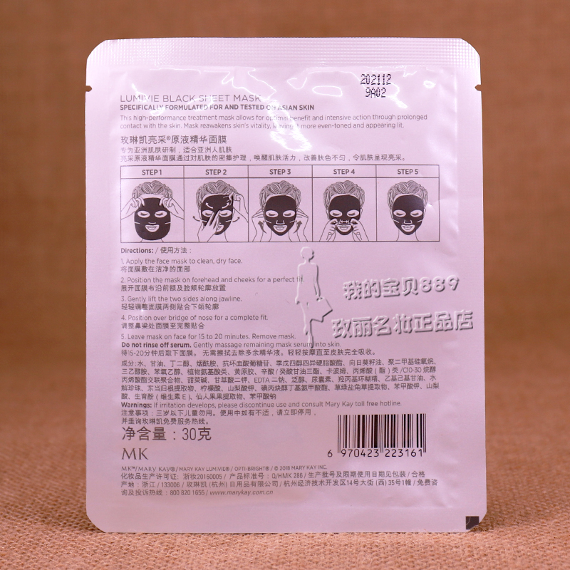 玫琳凯亮采原液精华面膜30g 5片 提肤色滋润补水保湿拆盒子裸发货