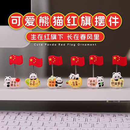 可爱熊猫摇摆小红旗汽车摆件新款车载车内中控台工位情绪解压装饰