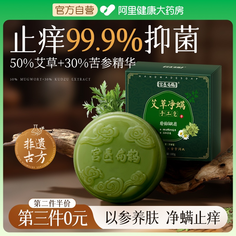苦参艾草香皂家用止痒抑菌硫磺除螨祛痘沐浴洗脸男女官方手工药皂