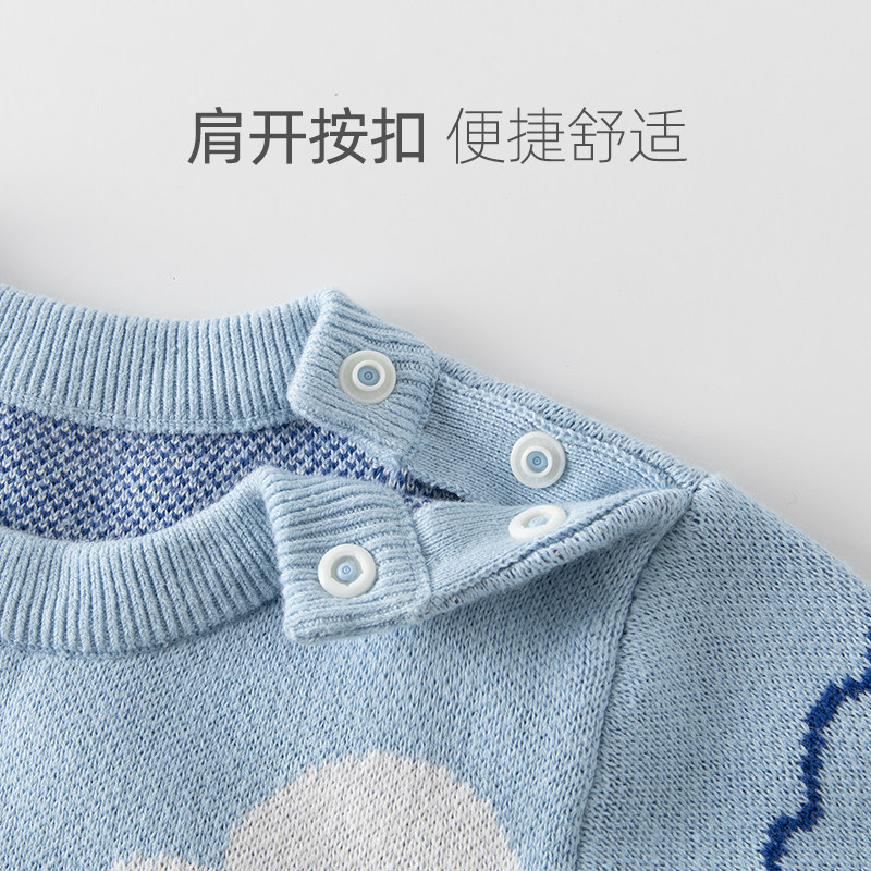 汤尼倍儿婴儿纯棉毛线连体衣服宝宝秋冬季爬服毛衣针织衫外出哈衣
