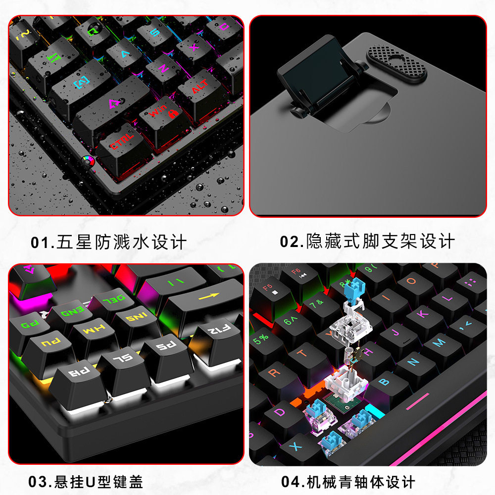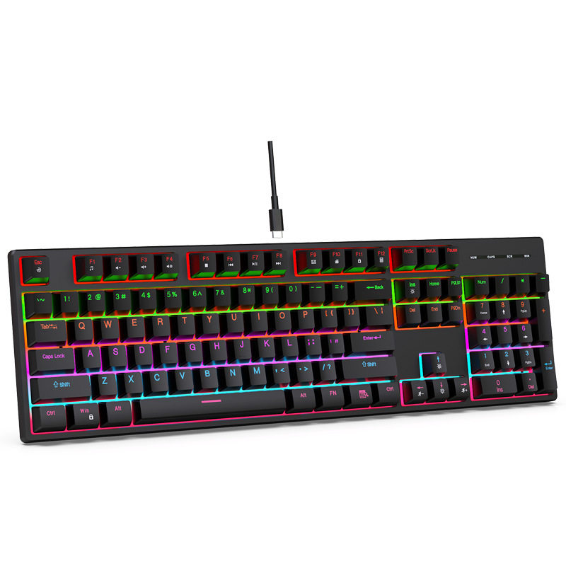 真机械键盘源头工厂RGB游戏青轴防尘防水104键竞技金属键盘