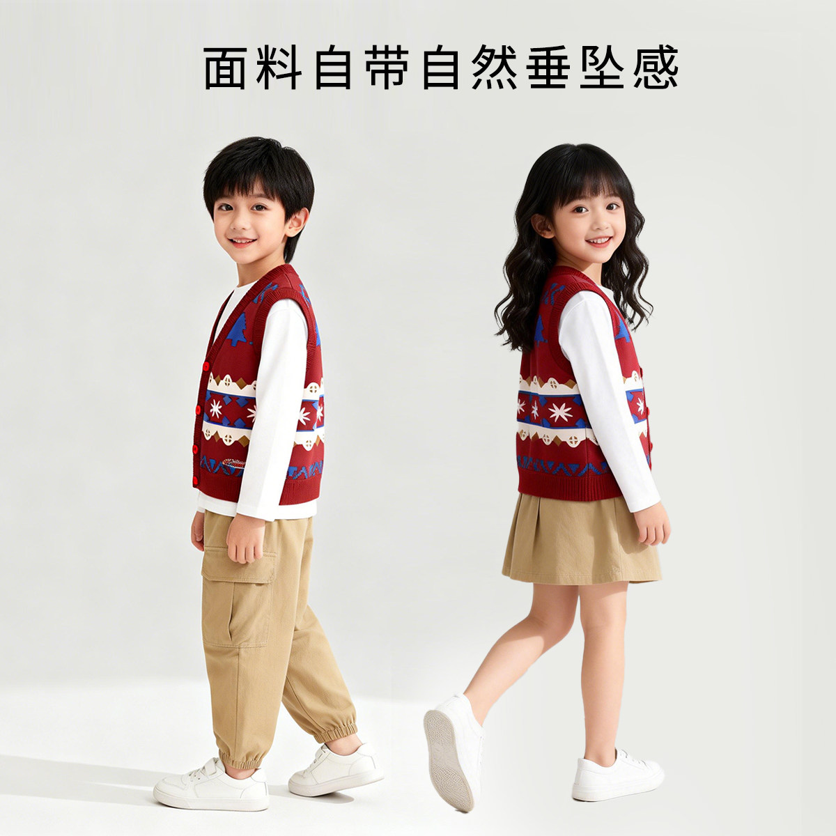 史努比女童春装马甲2026新款洋气儿童针织背心男孩春秋时尚马夹