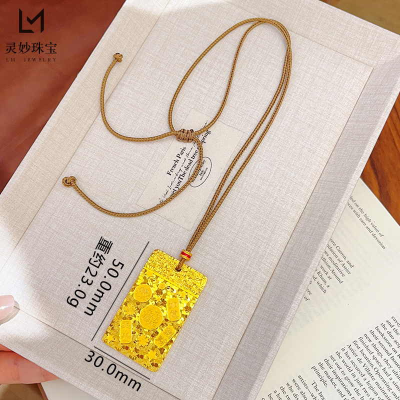 金店同款沙金爆闪吉言碎冰冰平安牌吊坠项链实心方牌无事牌挂坠女