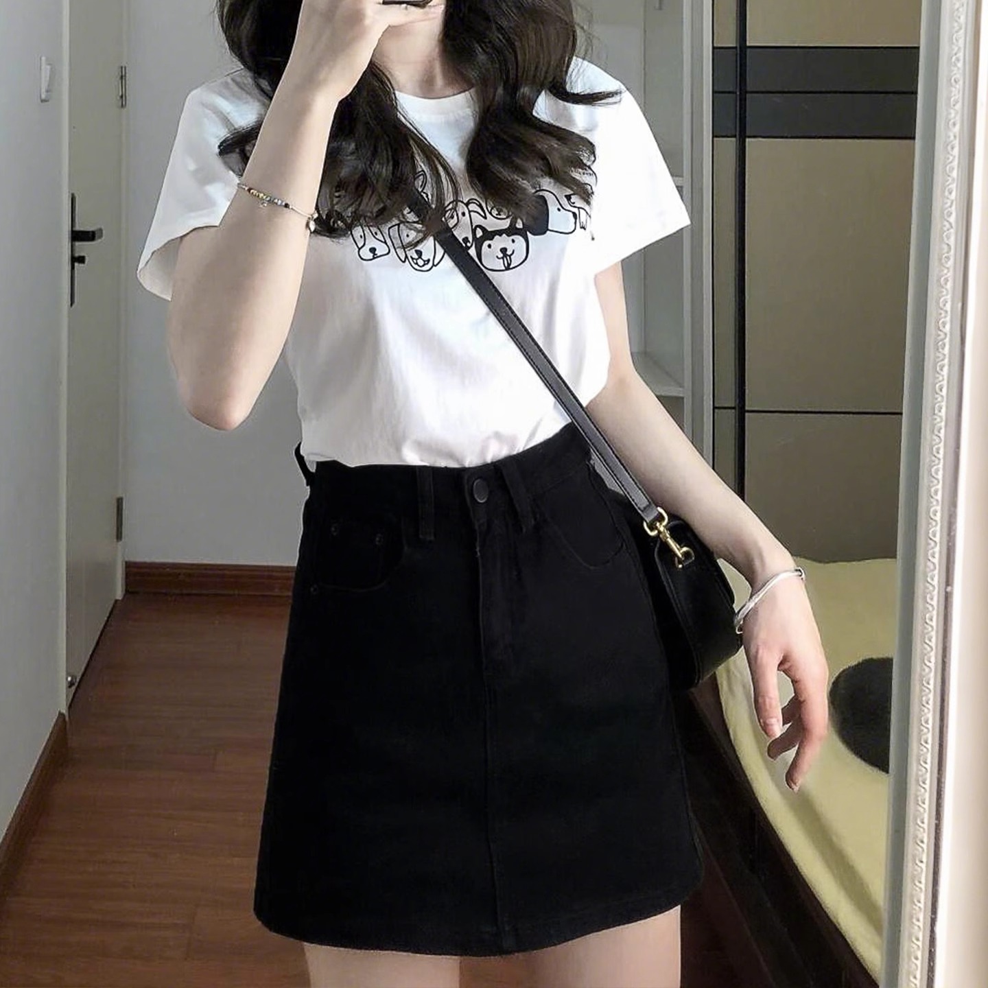 黑色水洗牛仔短裙女夏季薄款高腰修身显瘦梨形身材a字包臂半身裙