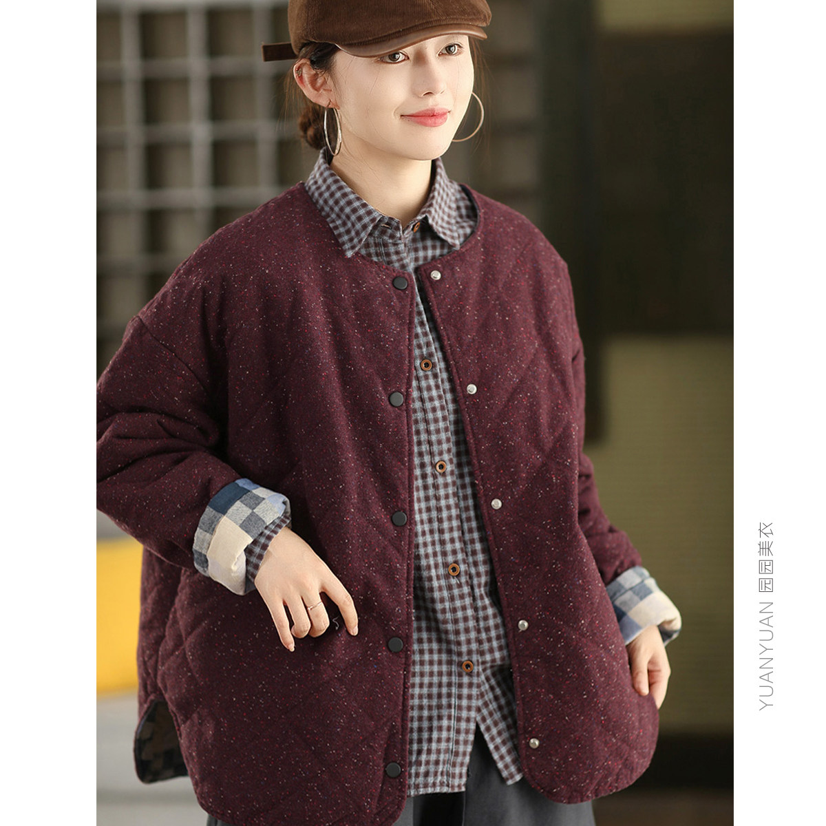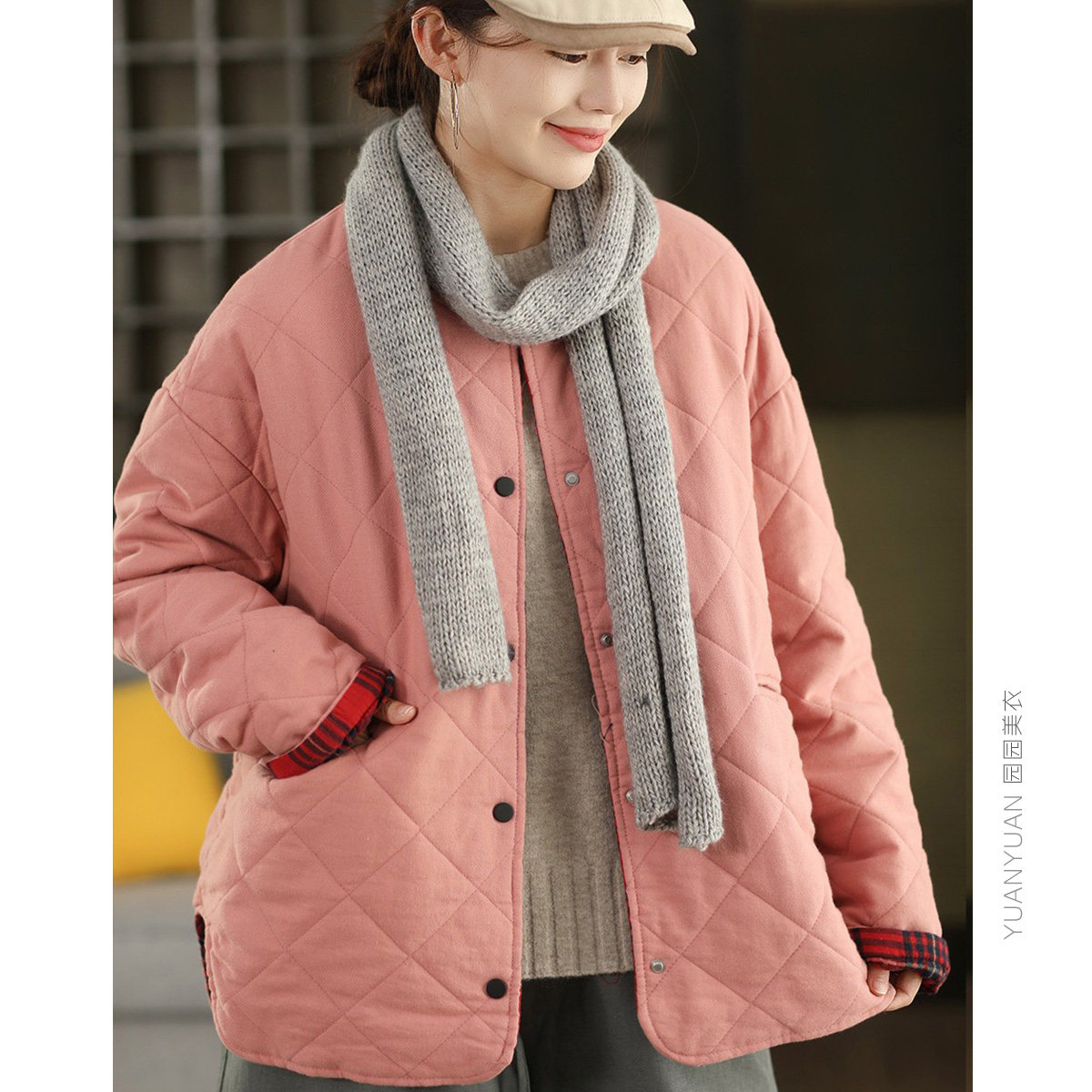 园园棉衣正反两面穿格纹加厚棉衣冬季100%棉保暖夹棉棉袄外套棉服