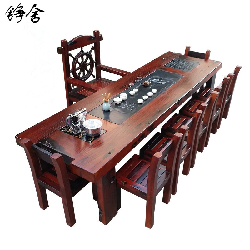 老新款铮舍天津实木家具船木功夫茶台阳台小茶几休闲泡茶桌椅组合