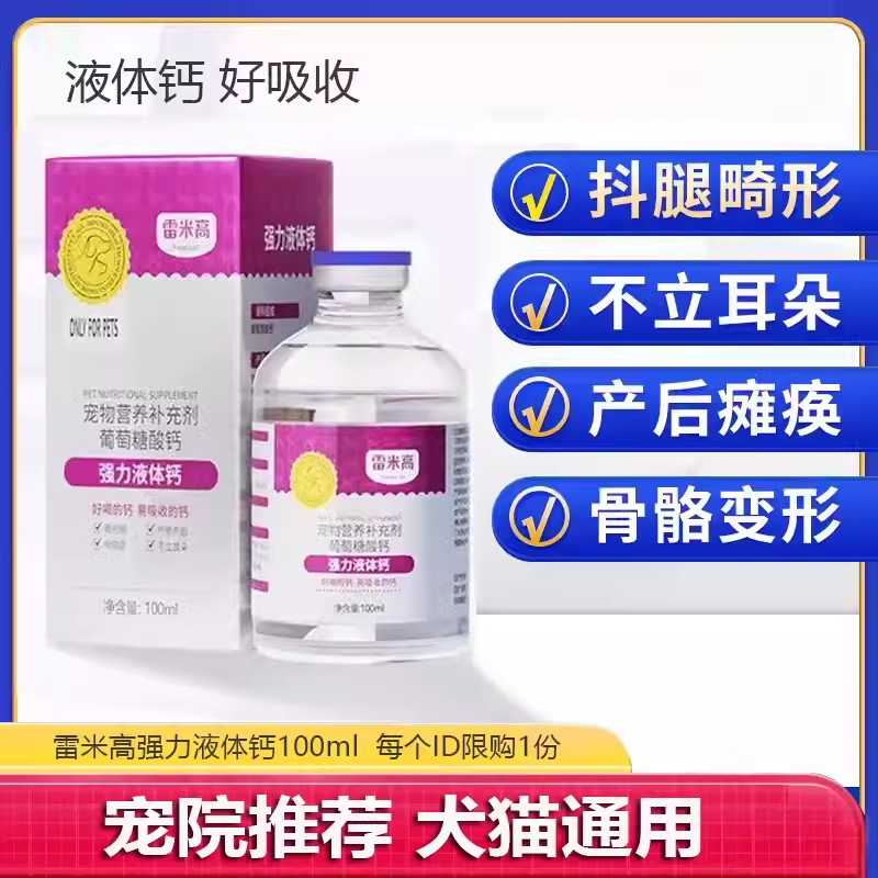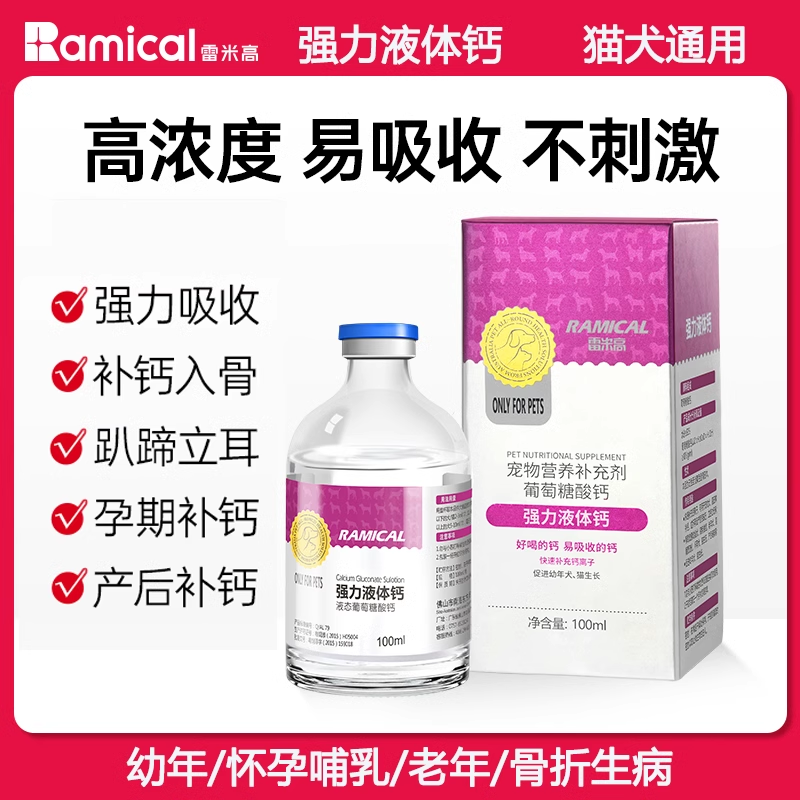 雷米高液体钙狗狗钙片猫咪健骨补钙金毛泰迪幼犬老年犬腿抖营养液