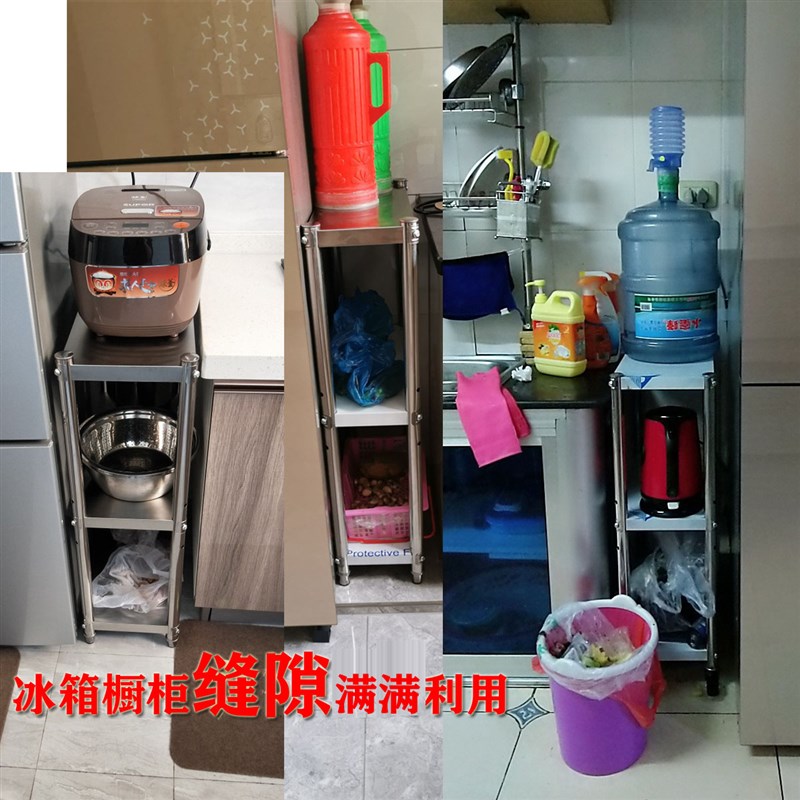 20/25cm宽不锈钢夹缝收纳柜落地式三层厨房置物架橱柜冰箱缝隙架