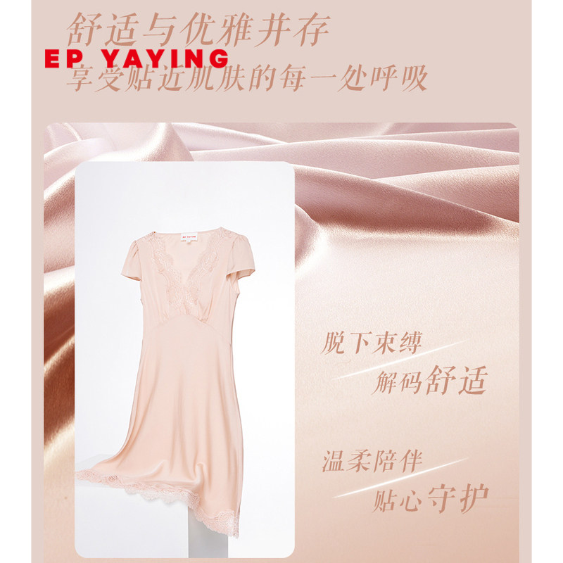 EP YAYING雅莹女装 真丝V领蕾丝拼接睡裙居家连衣裙商场同款L901A