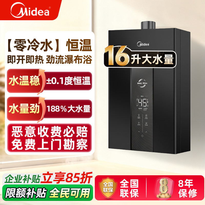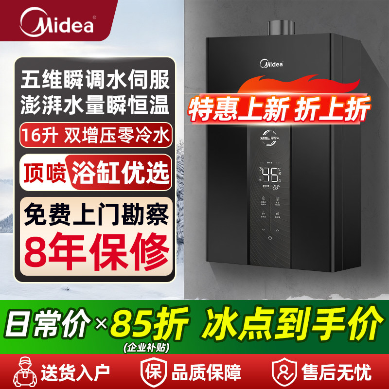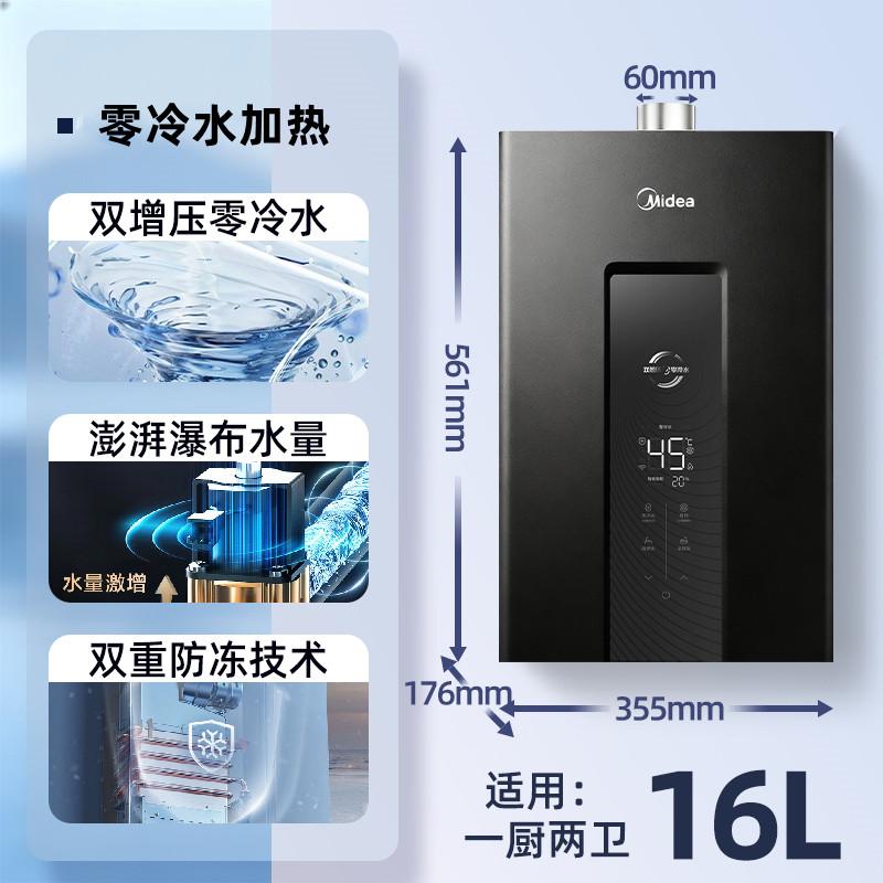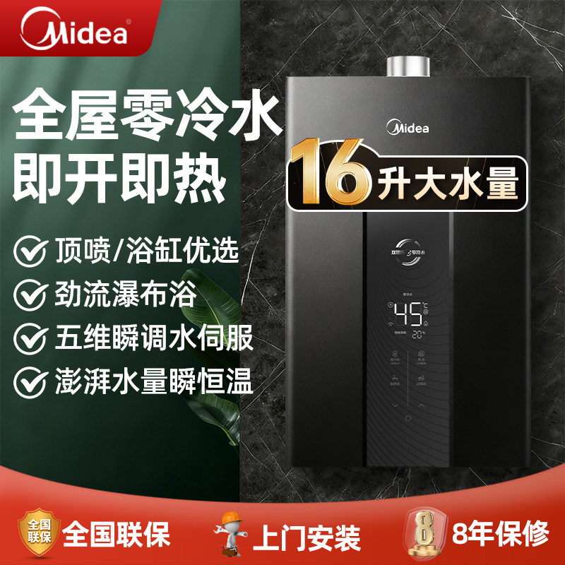 美的燃气热水器家用零冷水燃气热水器双增压变频节能16升大水量