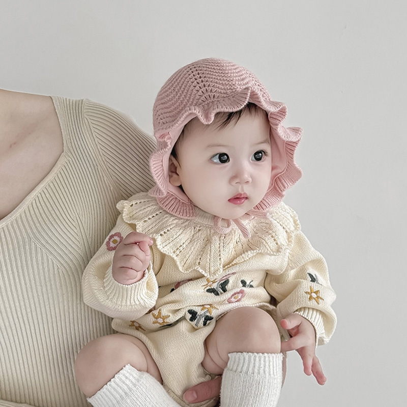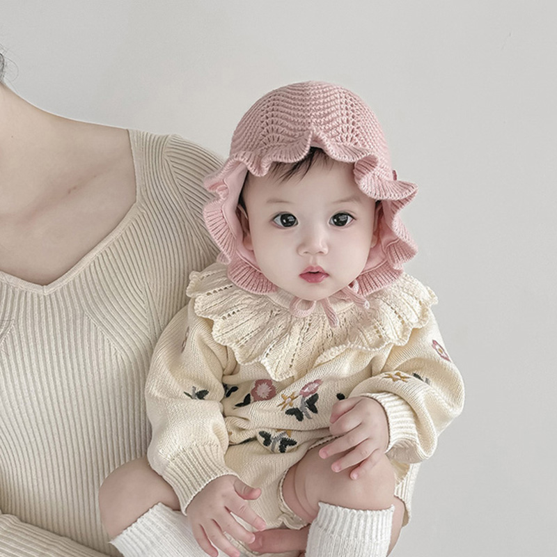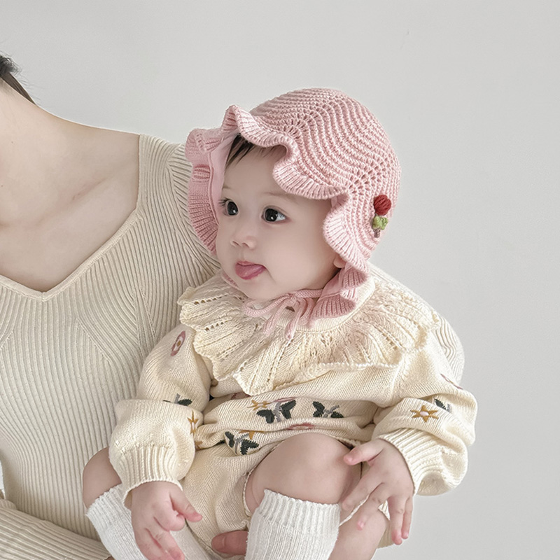 婴儿帽子秋冬季洋气公主护耳帽女宝宝小月龄保暖加厚针织毛线胎帽