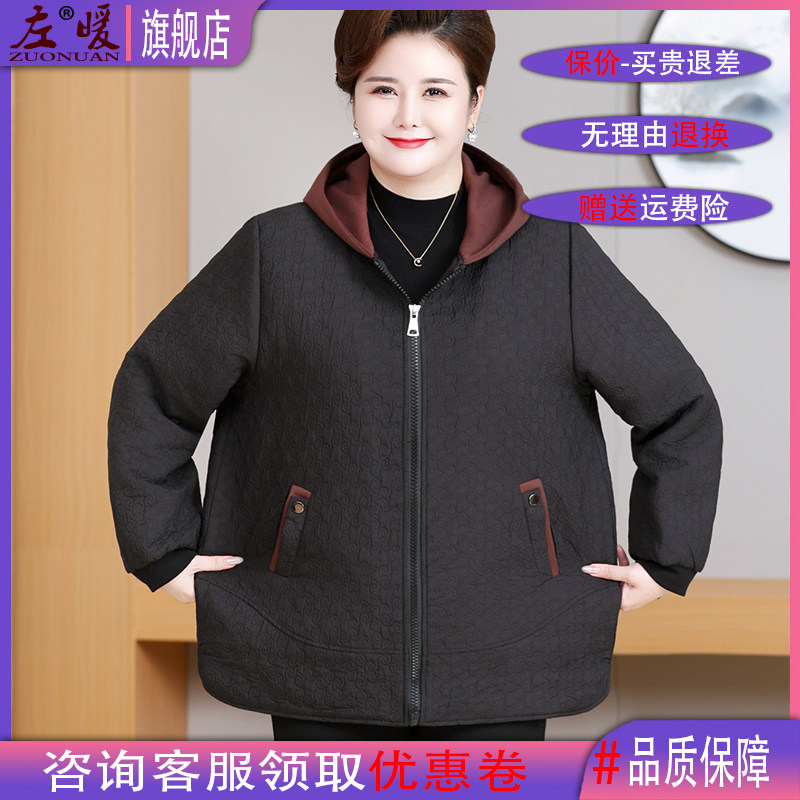中老年人大码女装加绒棉袄外套胖奶奶加肥连帽厚夹克妈妈保暖风衣