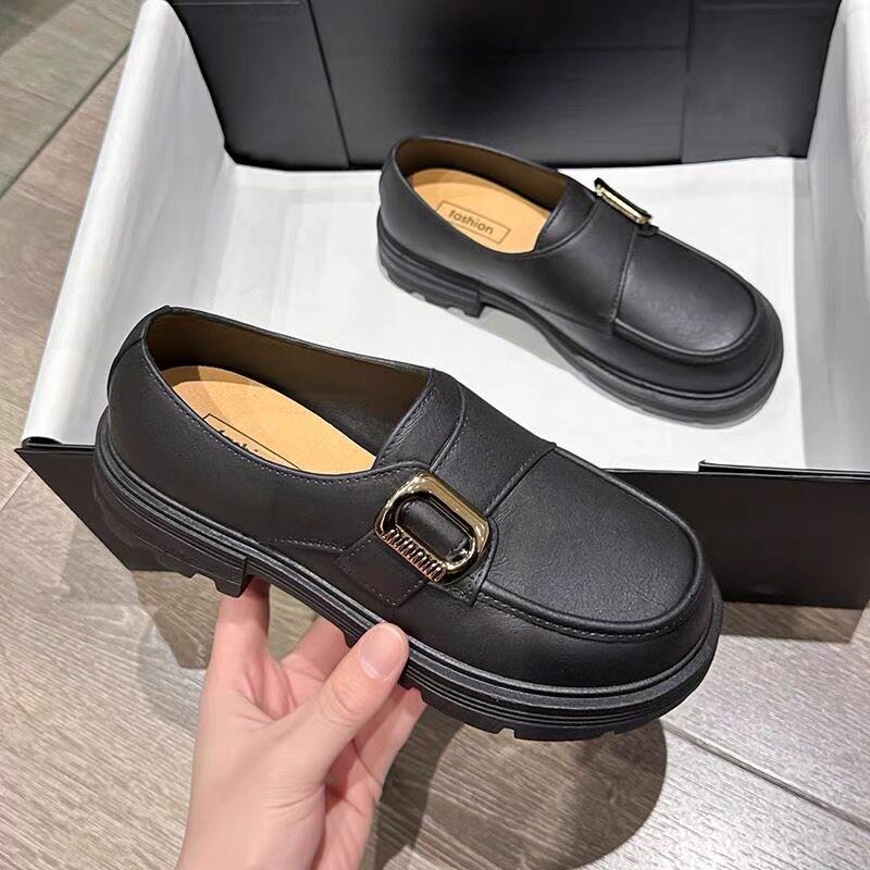 2025春秋女外穿时尚韩版百搭少女心单鞋防滑软底塑胶扣乐福鞋厚底