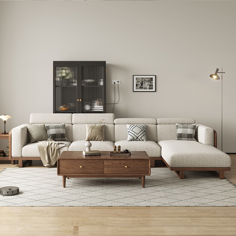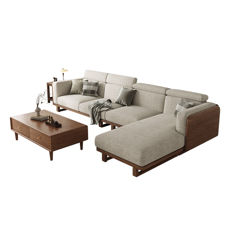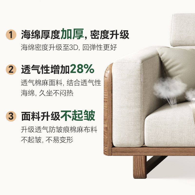 北欧风全实木沙发新中式白蜡木布艺沙发简约大小户型客厅实木家具