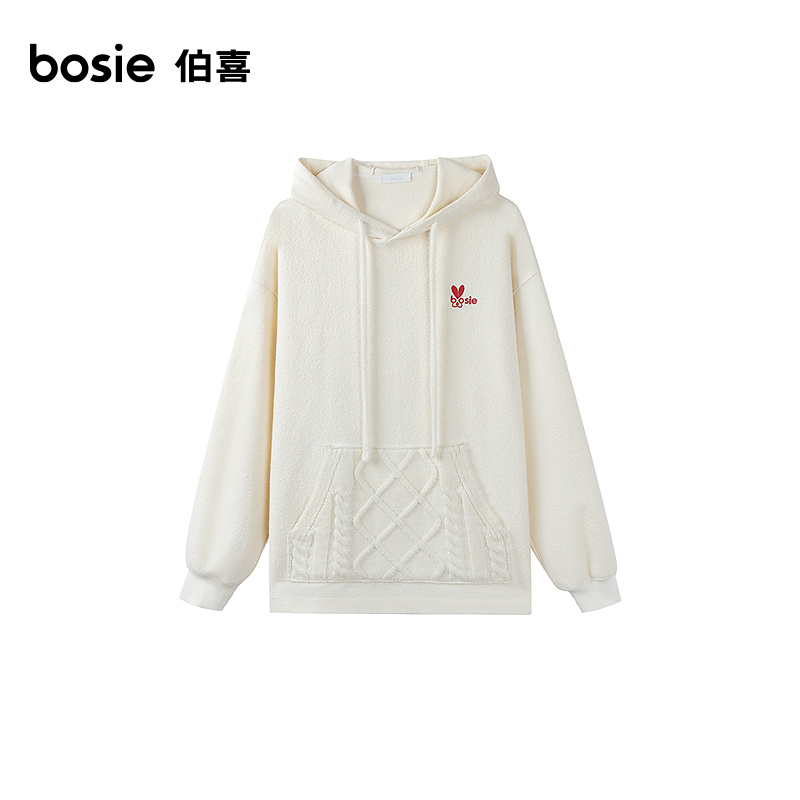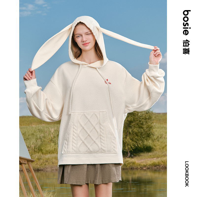 bosie伯喜2025年秋季新款撞色连帽卫衣男情侣兔耳设计肌理感外套