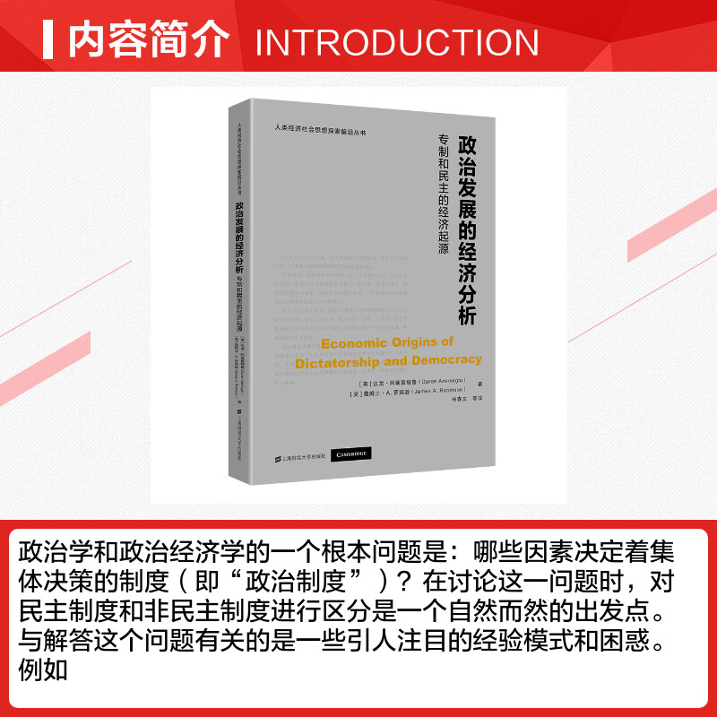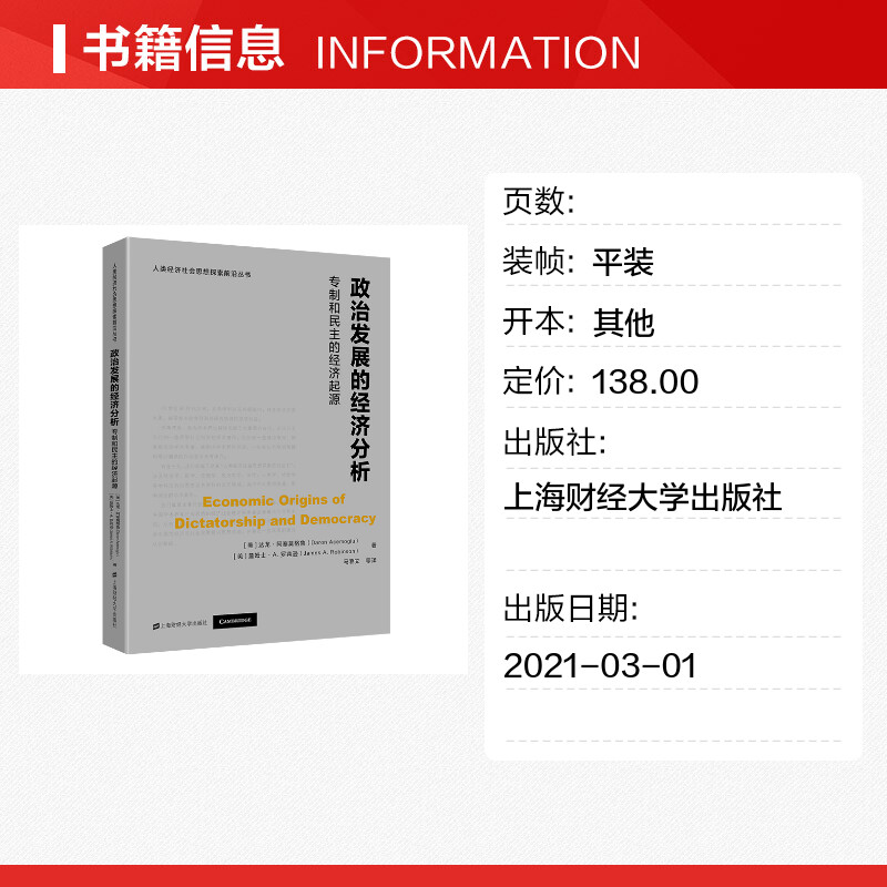 政治发展的经济分析(专制和民主的经济起源)/人类经济社会思想探索前沿丛书 达龙·阿塞莫格鲁 著 马春文 译 经济理论经管、励志