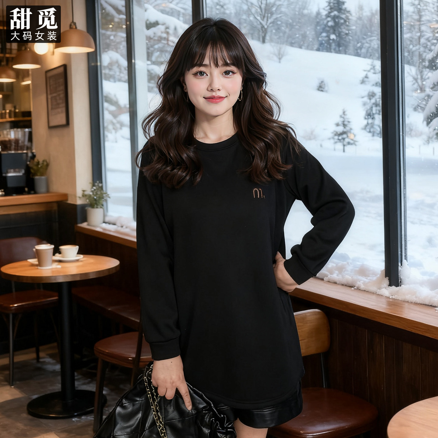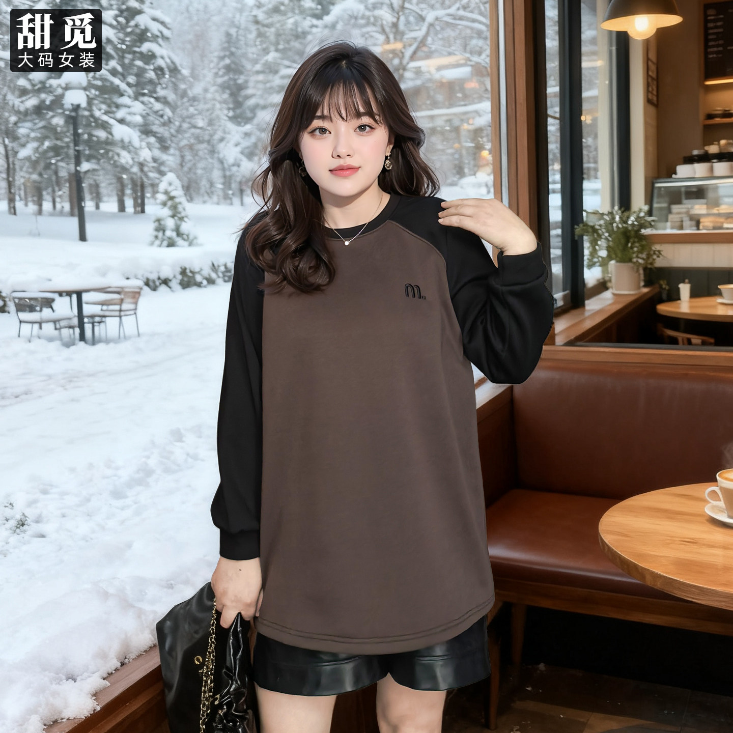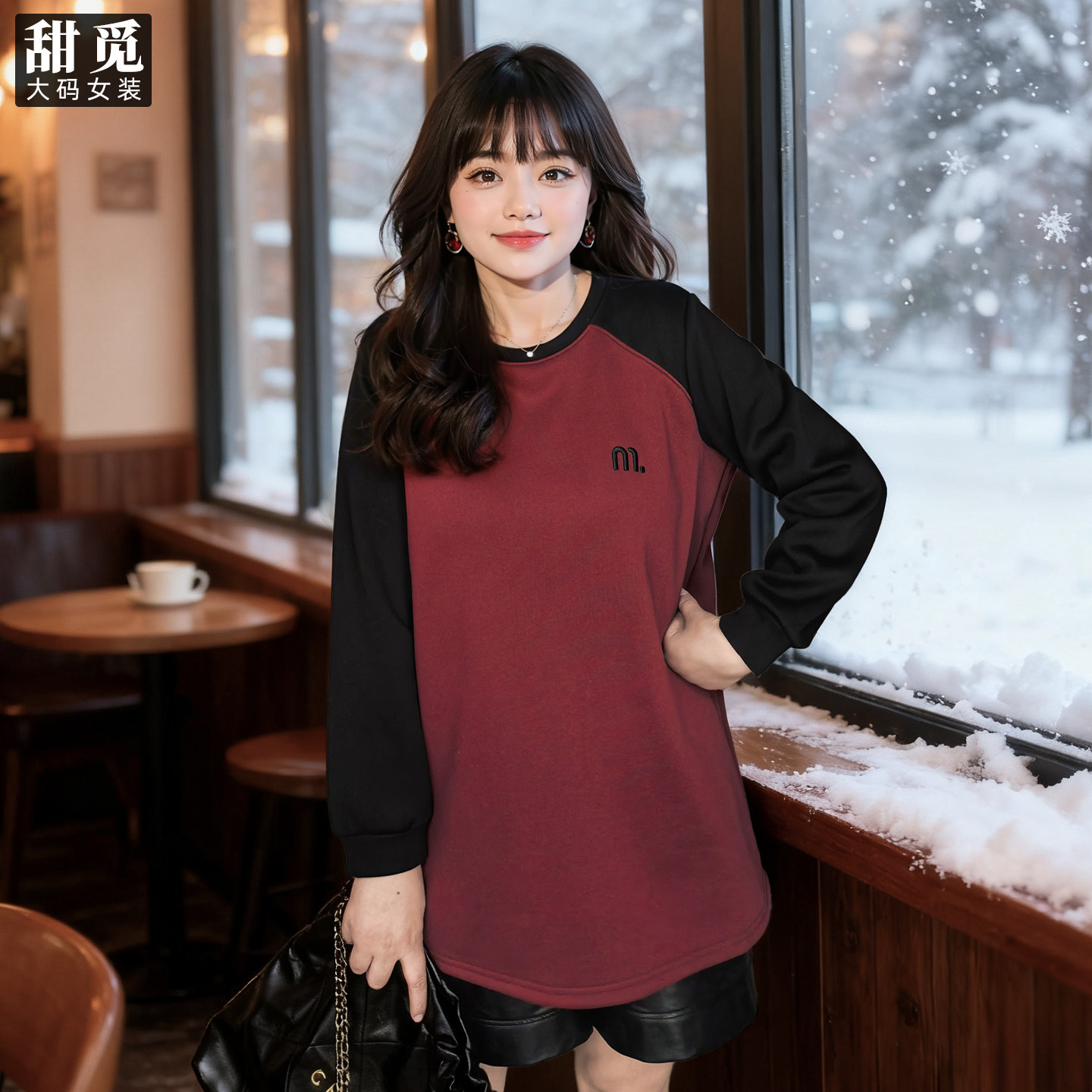 甜觅特大码女装冬装胖mm300斤字母绣花中长款加绒加厚保暖卫衣