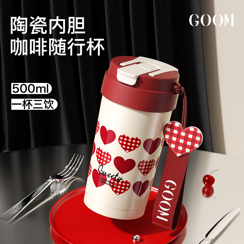 GOOM保温杯咖啡吸管2026女生新款高颜值大容量陶瓷内胆保冷水杯子