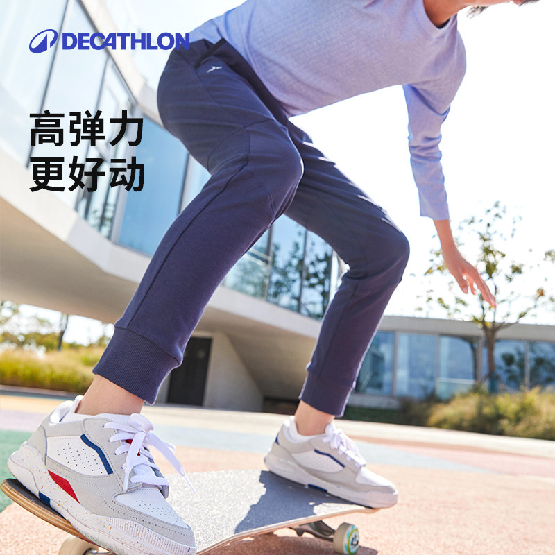 迪卡侬男童裤子速干裤儿童春宽松运动裤棉跑步女童休闲长裤子KIDC