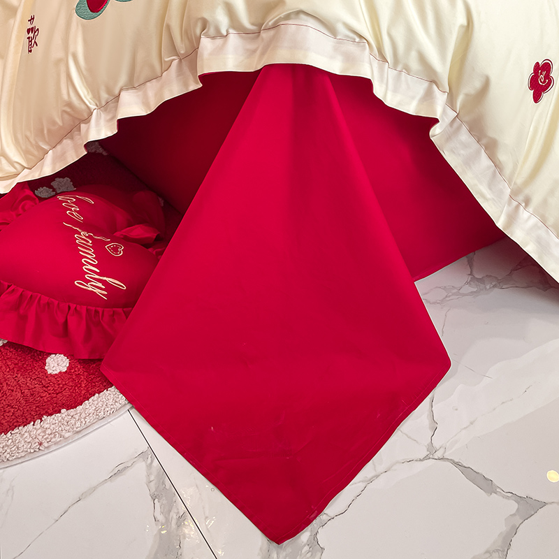 拼色款纯棉结婚四件套红色女方陪嫁婚庆婚嫁新婚牀上用品高档牀单