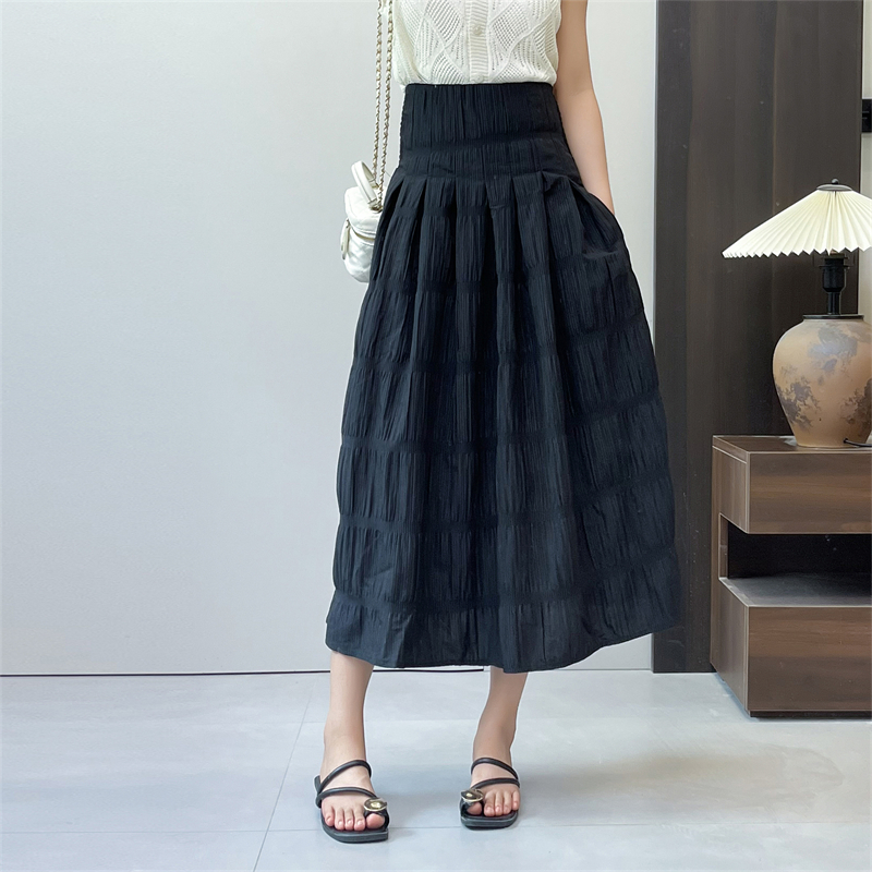惠衣阁夏女半松紧腰高腰半身裙后开叉中长裙甜美休闲学院风a字裙