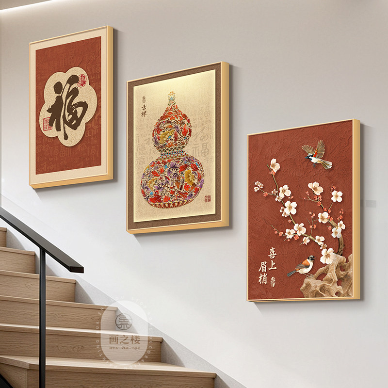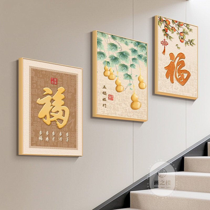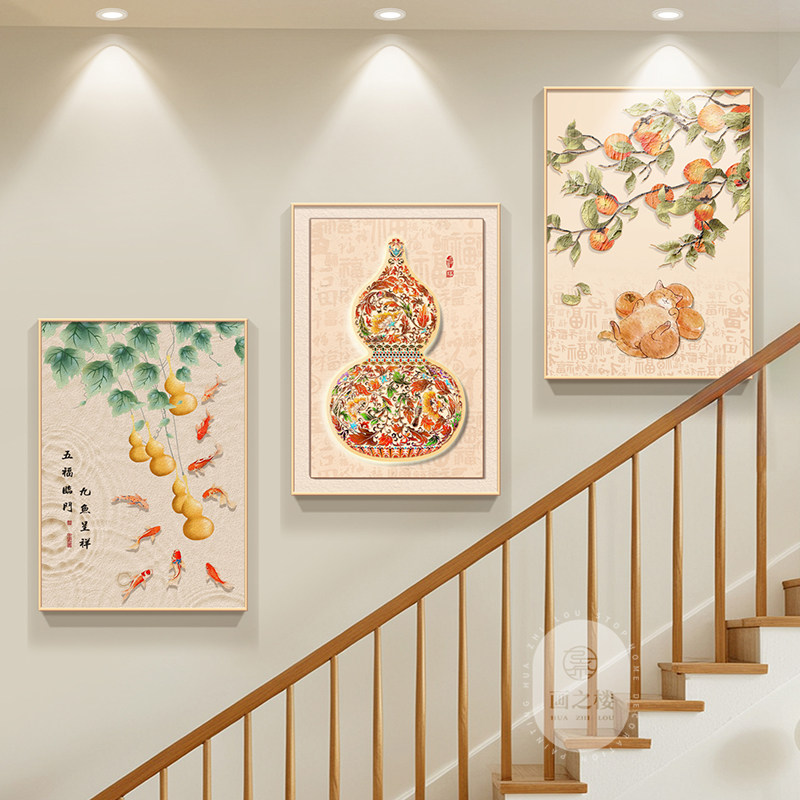 葫芦楼梯间装饰画新款福禄组合画