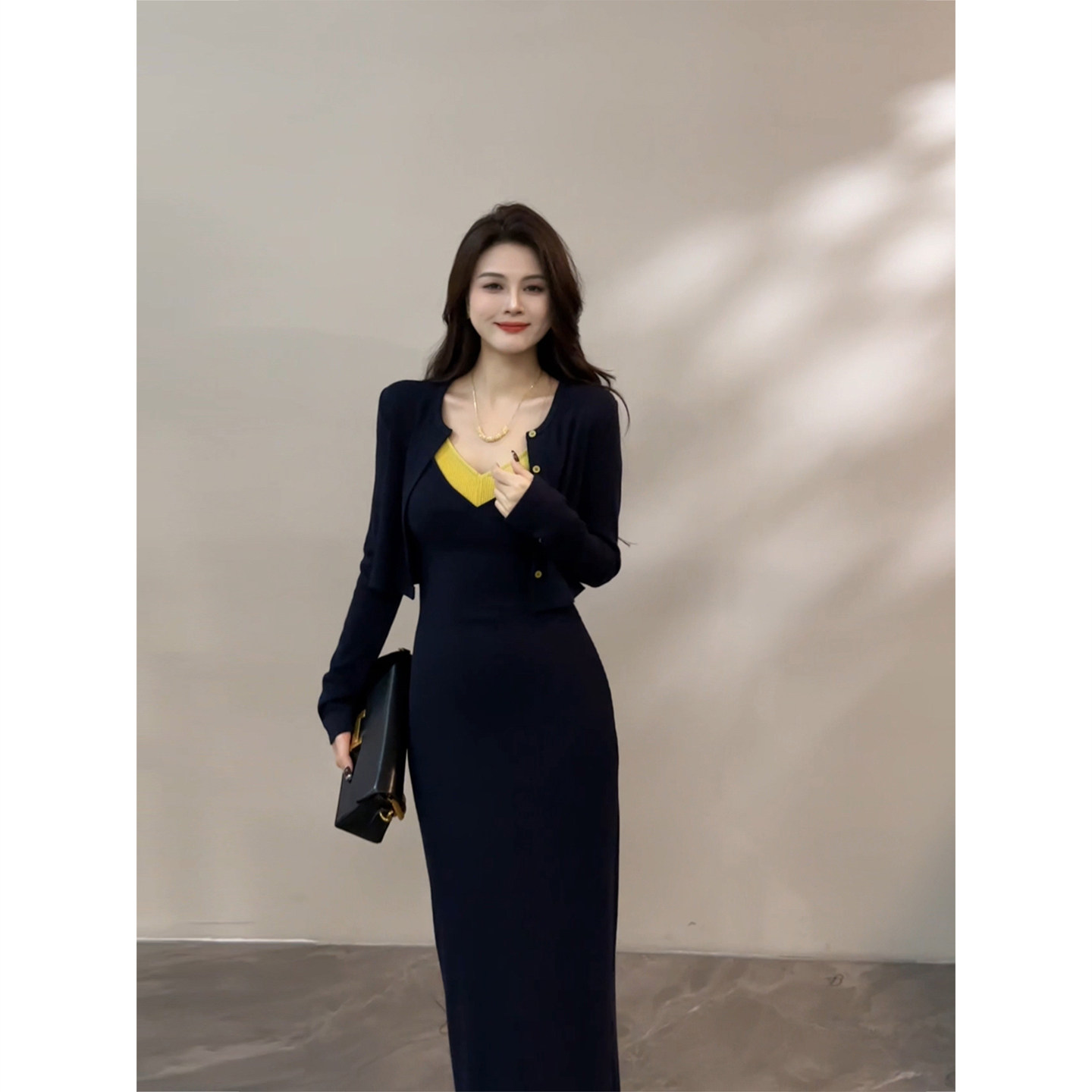 大婷婷 吊带休闲撞色法式时尚两件套长款秋季轻熟风套装DT1576
