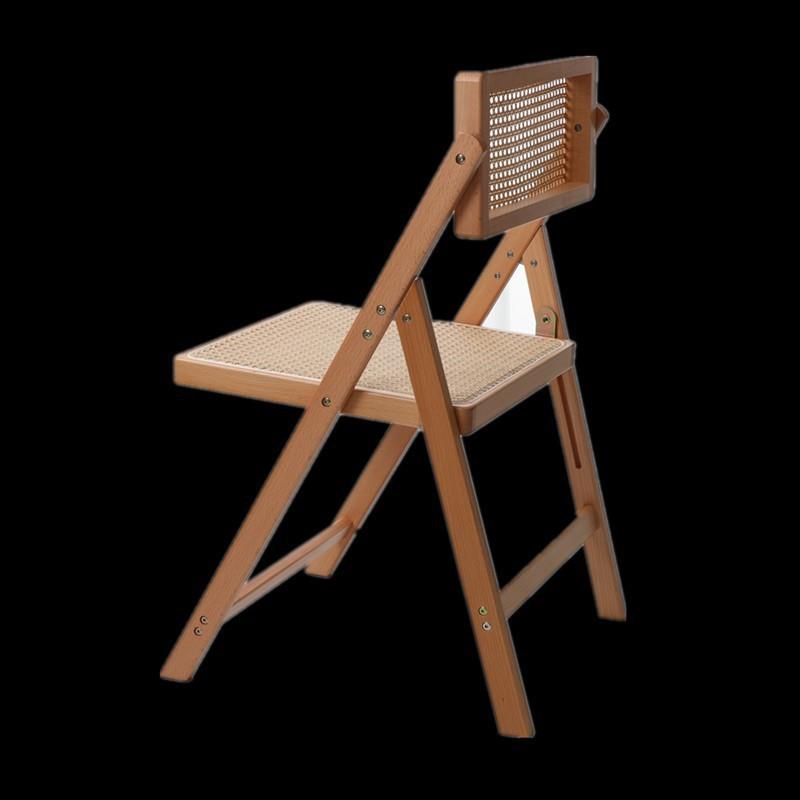 实木折叠椅藤编餐椅家用可折叠椅透气办公椅复古阳台休闲靠背椅子