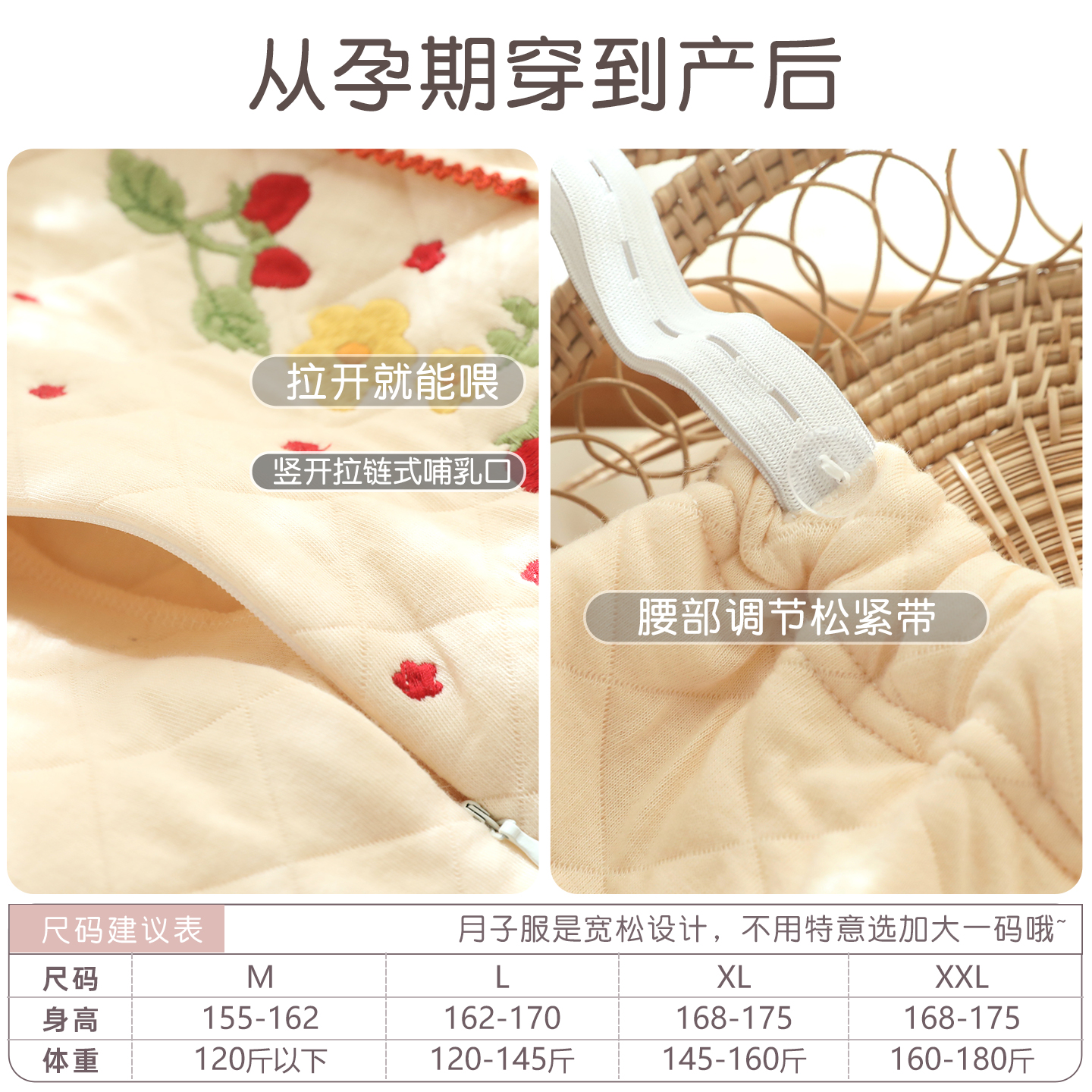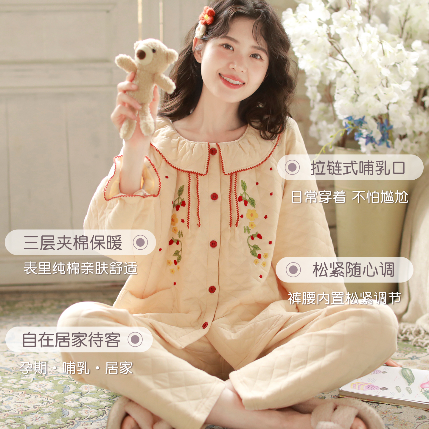 富朵空气棉月子服秋冬孕妇哺乳保暖夹棉睡衣产妇产后家居服套装
