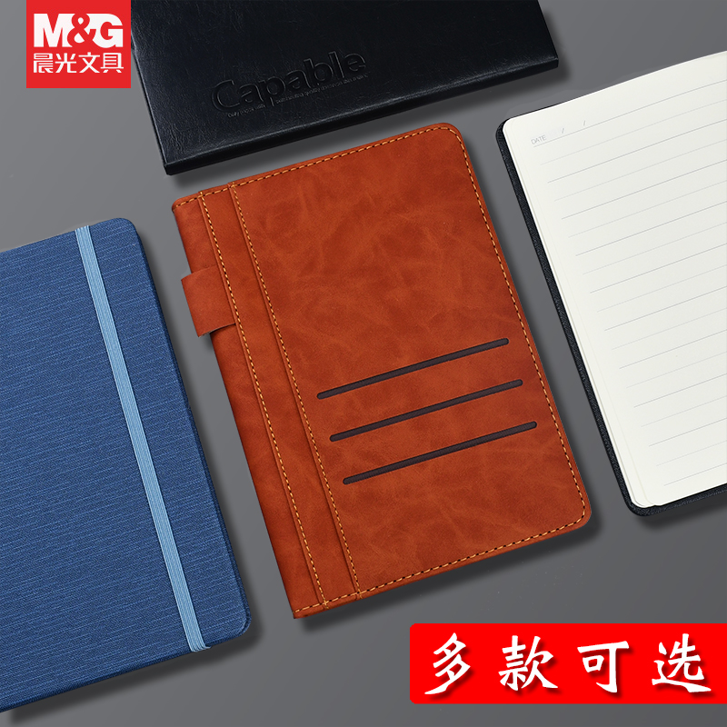 晨光皮面笔记本记事本加厚笔记本子商务记事本工作会议记录本皮面日记本办公皮面笔记本A5/B5工作本子