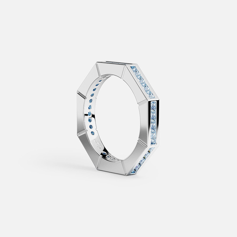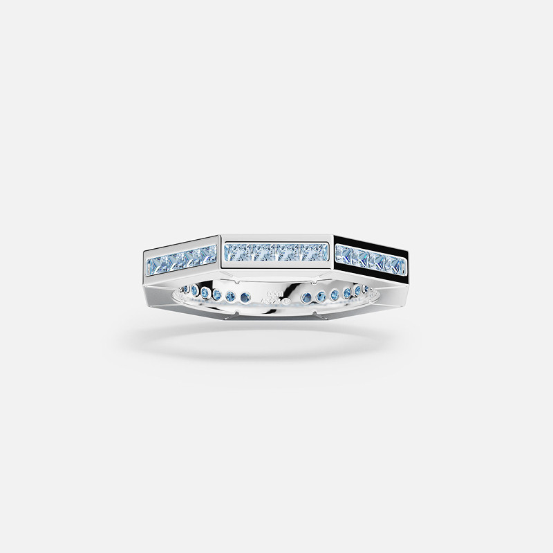 [春季新品]APM Monaco 湖蓝色几何密镶戒指叠戴百搭精致简约设计