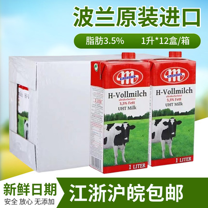 波兰进口全脂纯牛奶1L*12盒 学生营养餐饮奶茶咖啡奶泡烘焙早餐奶