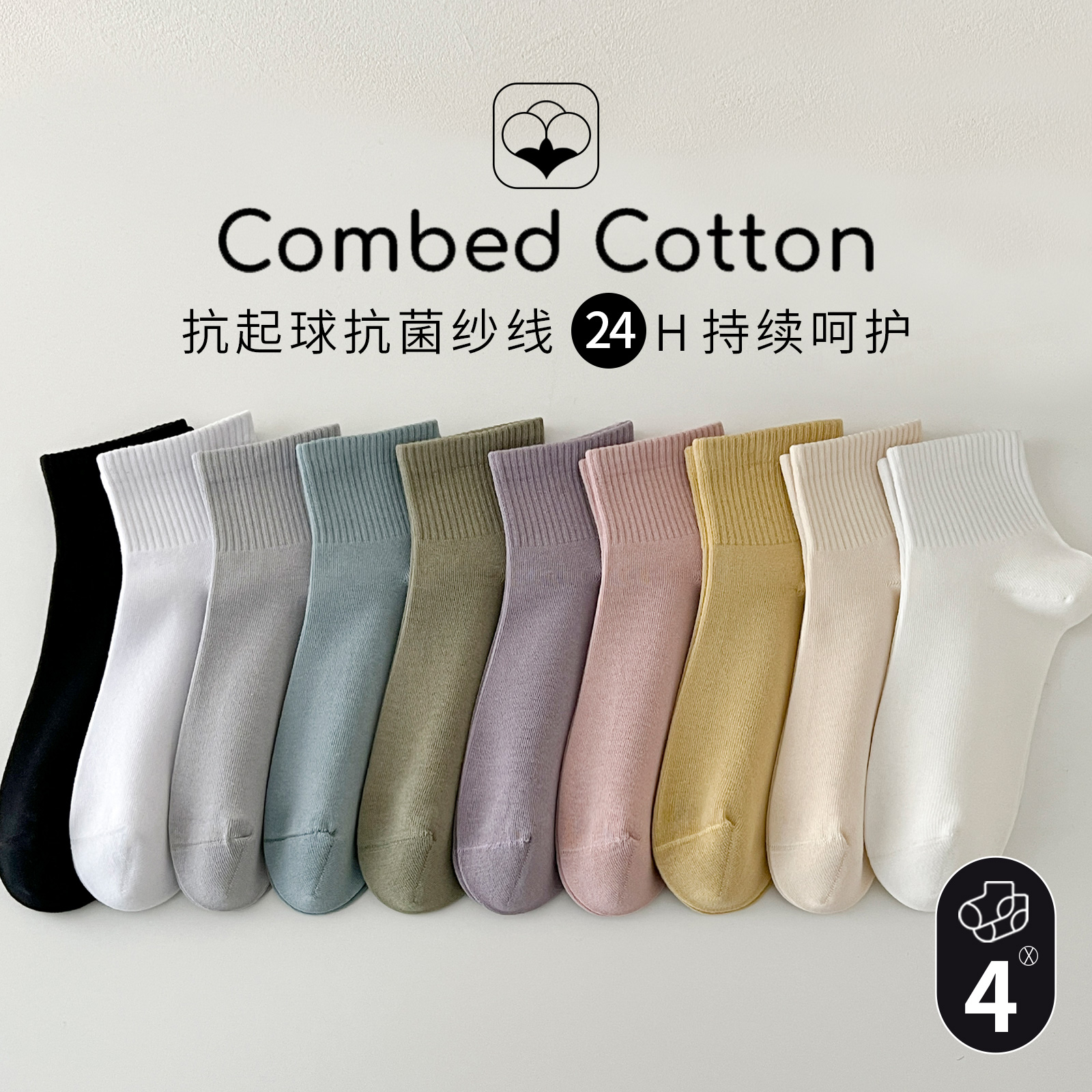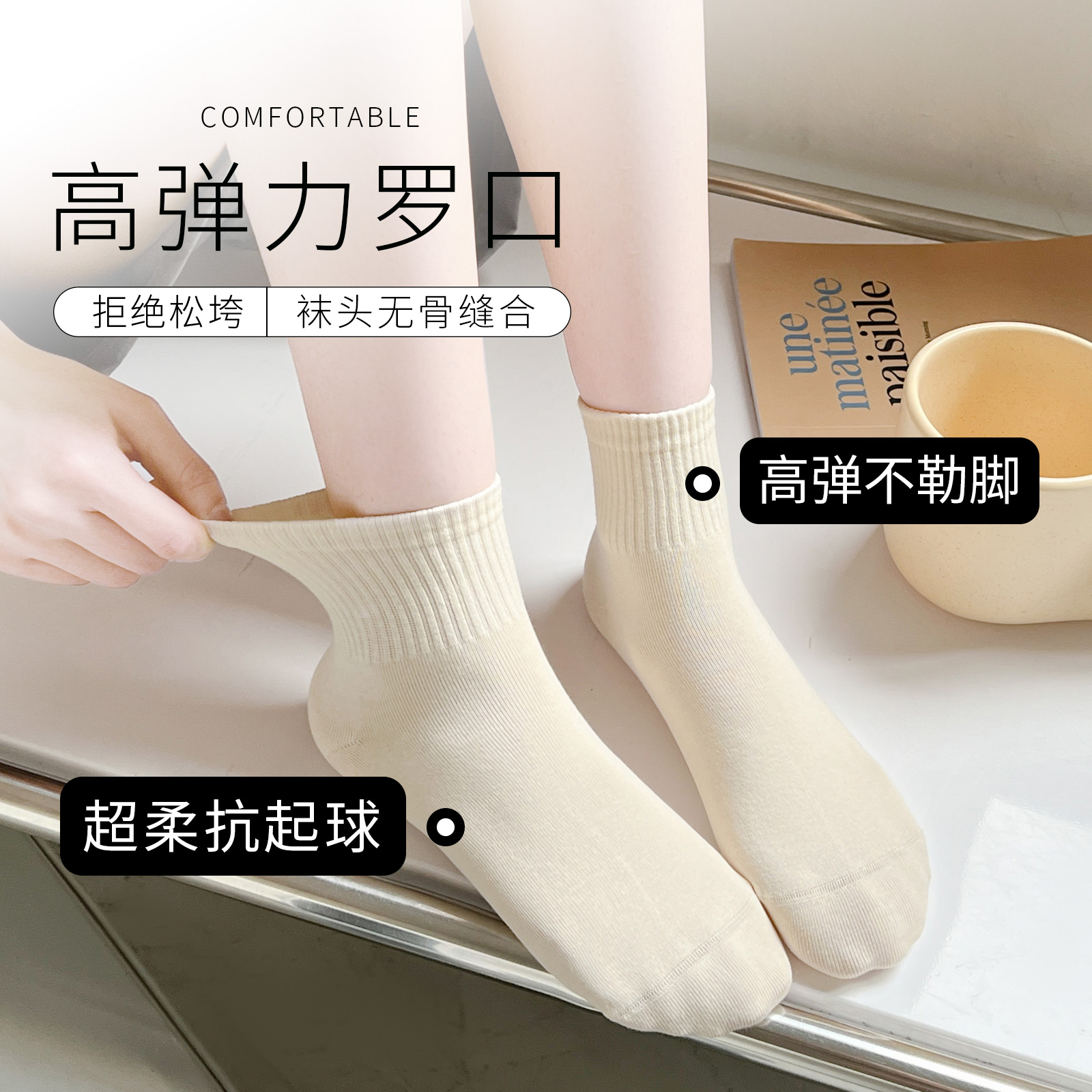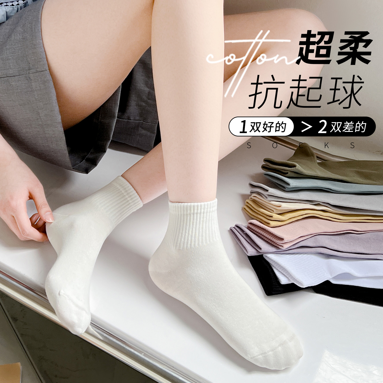 纯色袜子女纯棉吸汗彩色中筒袜春秋季薄款无骨袜运动袜中帮短筒袜